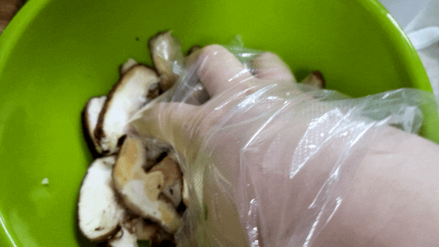 손질한 표고버섯을 한 곳에 모아주고