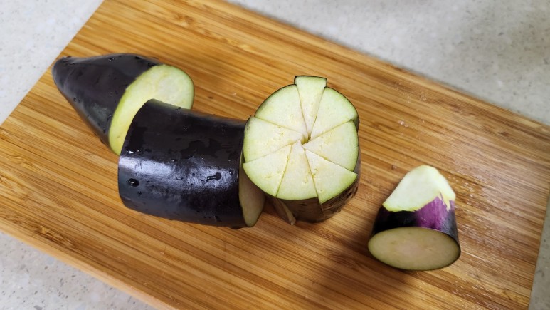 가지 몸통 두께에 따라 4등분에서 8등분 컷~
