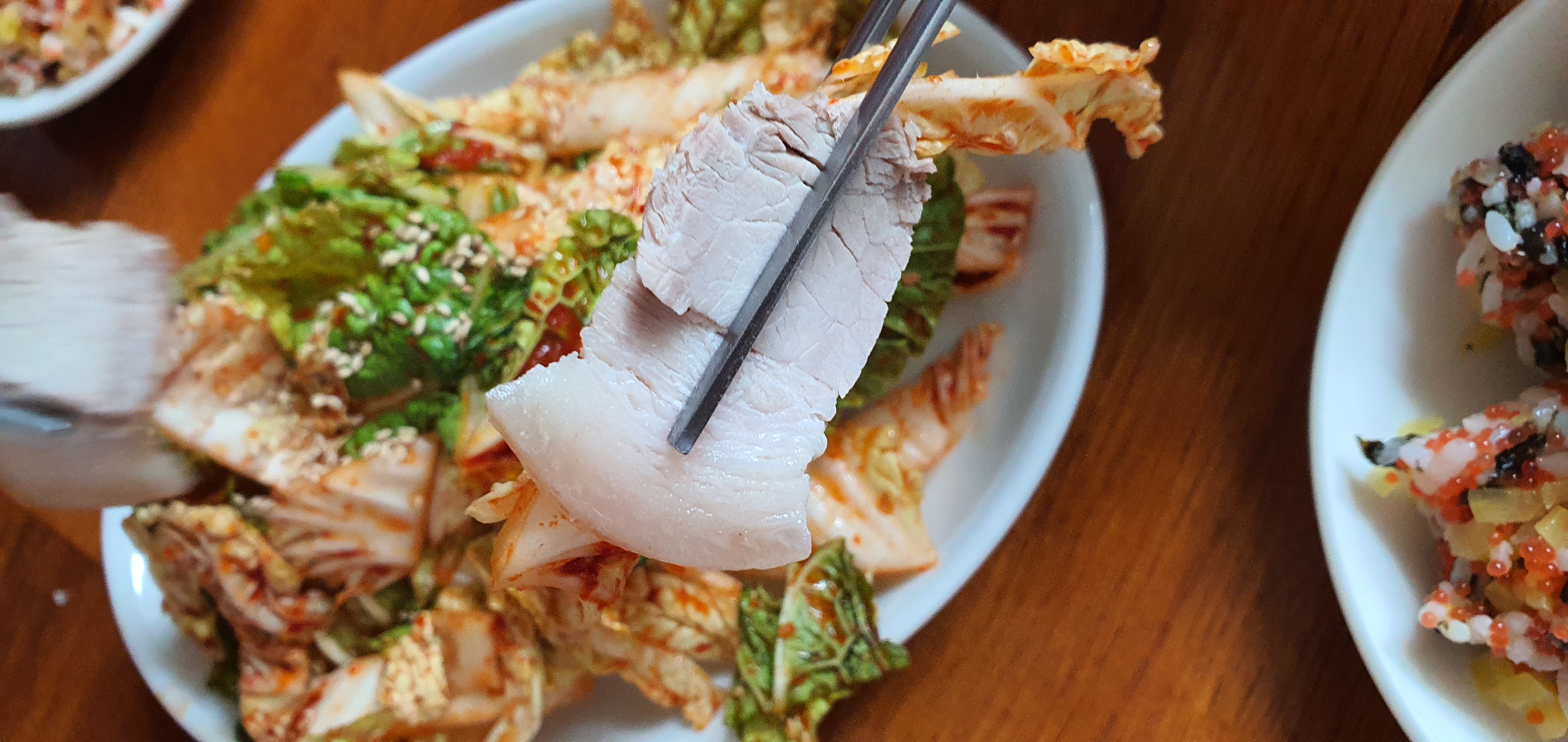 김치이벤트로 받은 상품으로 보쌈김치 만들어서 수육하고 같이 먹었어요♡ 오랜만에 수육 먹으니 맛있네요^^ 보쌈김치를 이리 쉽게 만들수 있다니~~! 아이들도 너무 잘먹어요♡