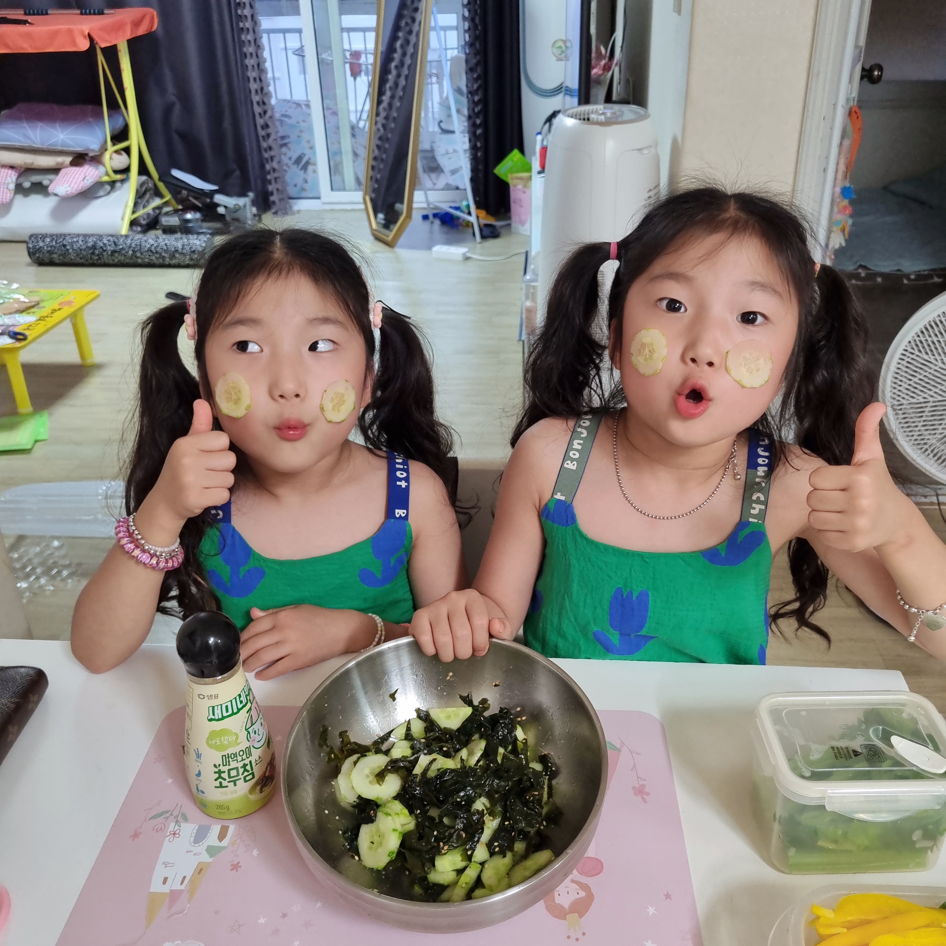 ㅎㅎㅎ 오이로 팩까지 완벽!! 너무 귀여운 자매 🥒💚