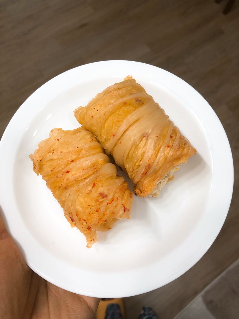 두부밥을 동그랗게 만들어 김치로 말아보았습니다