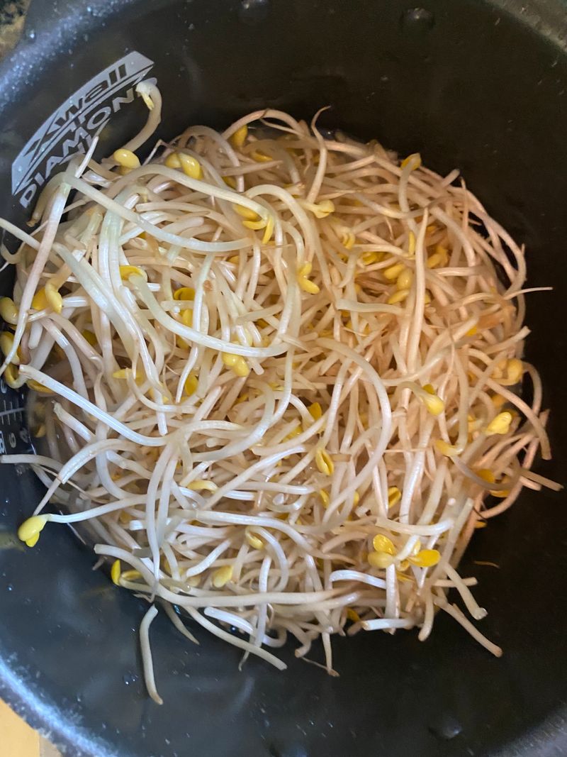 콩나물 하나만 잇으면 보양식 으로 든든하게 먹을수 잇는데 씻은 두툼한 콩나물을 밥에 올려 콩이랑 같이 한솥 찌면 단백질 보충 도 되고 건강에도 좋은 건강 보양식 완성이요 ^^