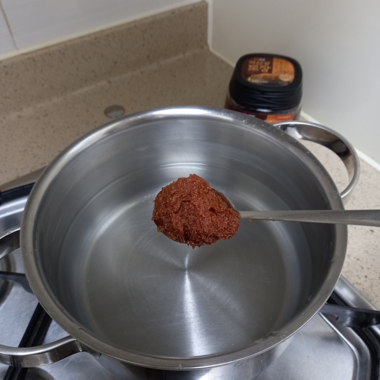 먼저, 토장을 덜어 물에 야무지게 풀어봅니다.