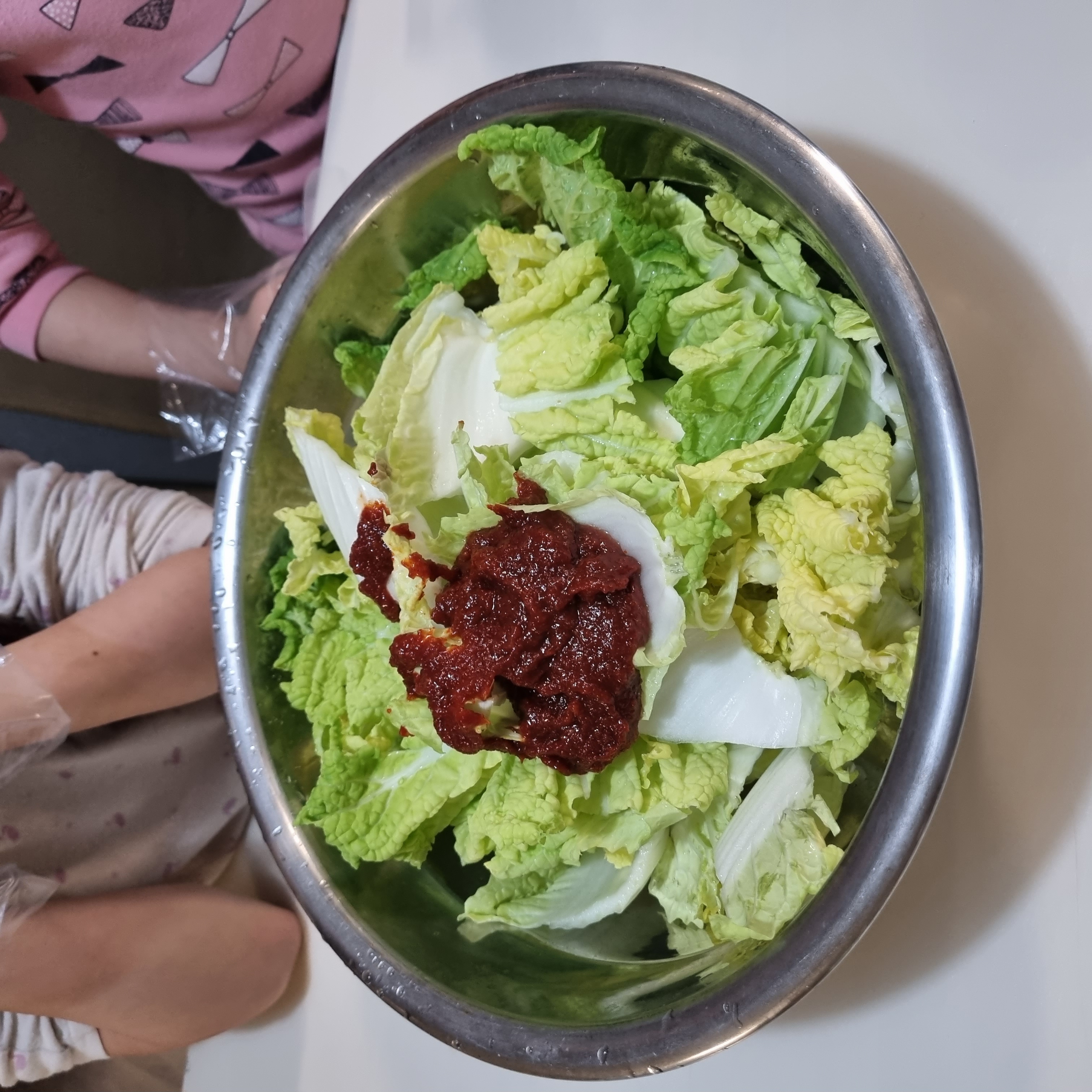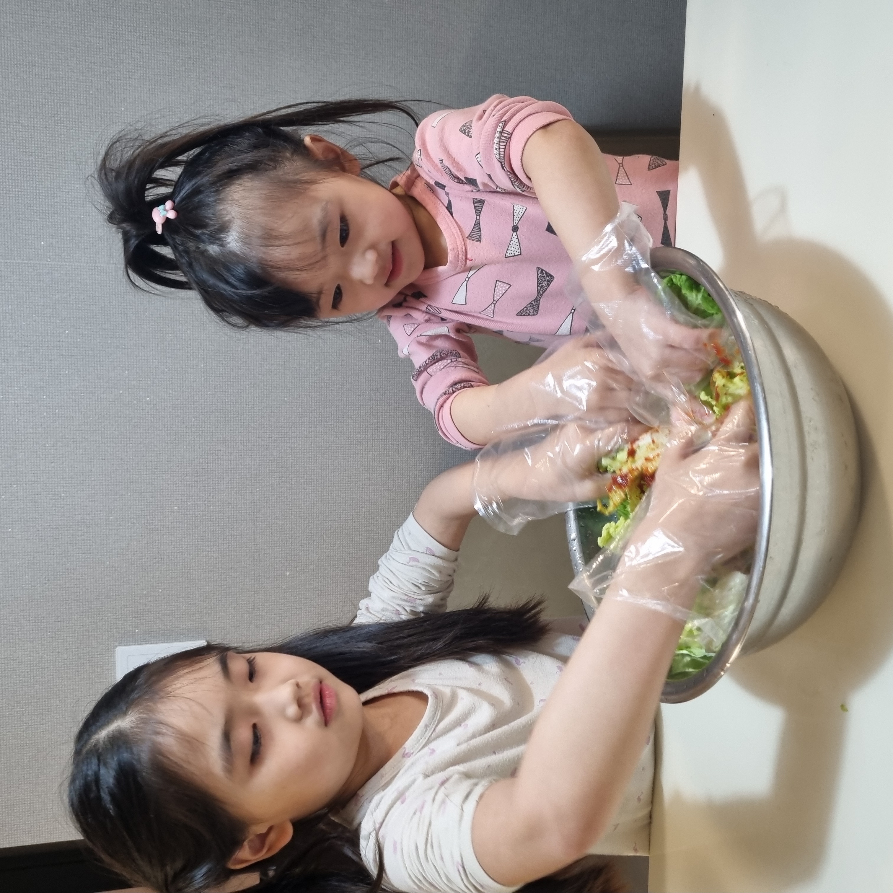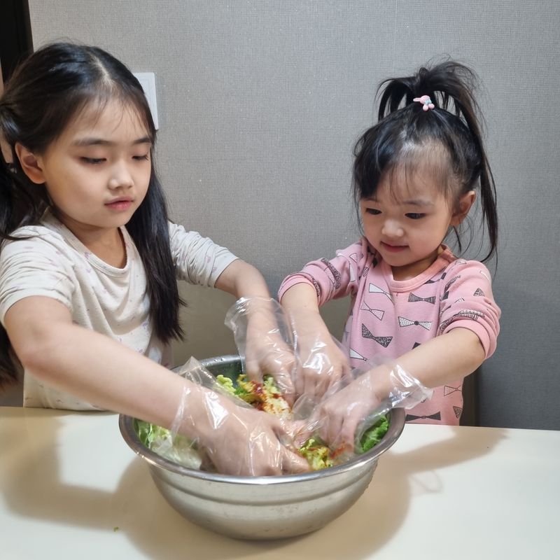 유치원에서 김치 만들어왔다고 너무 재밌다고 자랑했던 딸내미들. 그래, 우리 다음에는 집에서도 해보자~ 했으나 요알못 엄마는 뭘 준비해야하는지도 몰라 어물쩡 넘어갔었죠.
