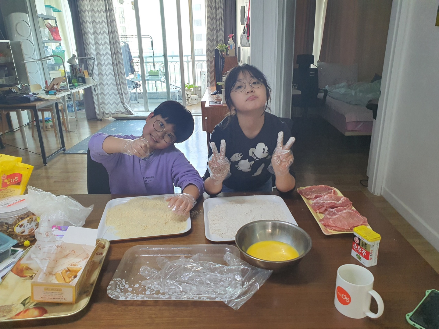 게임과 유투브에 빠진 아이들의 관심사를 돌리기 위해 큰 마음 먹고 도전한 돈까스 만들기!!