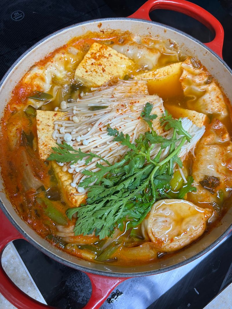 김치 만두전골...특히 김치를 좋아하는 9살 아들이 제일 잘먹어 주었다