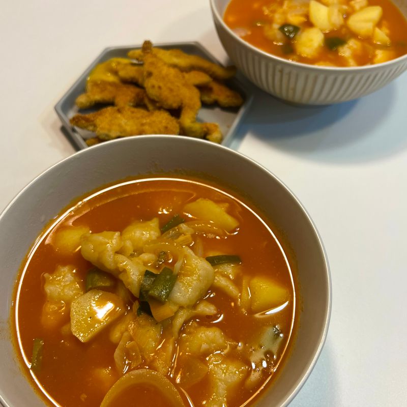 꾸리꾸리한 날에 얼큰수제비!