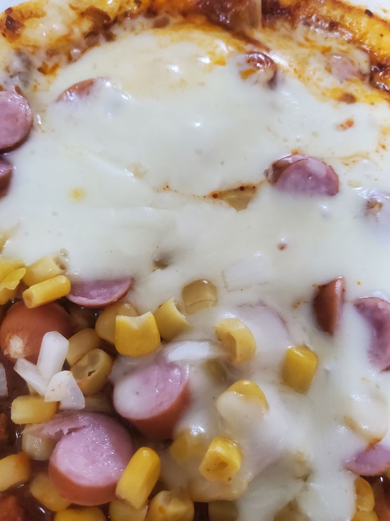 2.통조림 옥수수와 잘게 자른 양파를 올려줍니다