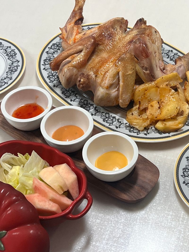촌닭으로 오븐 치킨구이 했는데 비쥬얼은 대성공 같지만……. 망했어요 ㅠㅠ 촌닭은 너무 질겨서 고무씹는….. ㅠㅠ 그래서 다 버리고 치킨 시켜먹었습니다 ㅠㅠ