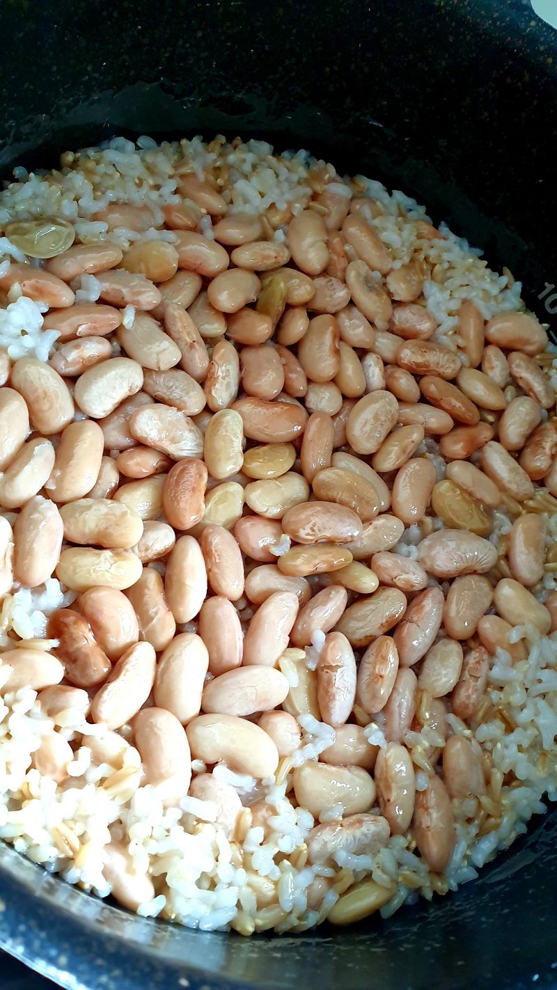 부모님께서 직접 따서 주신 콩으로 잡곡씻어 함께 밥했더니 옹기종기 콩들이 모두 위에 모여있네요.ㅎㅎ