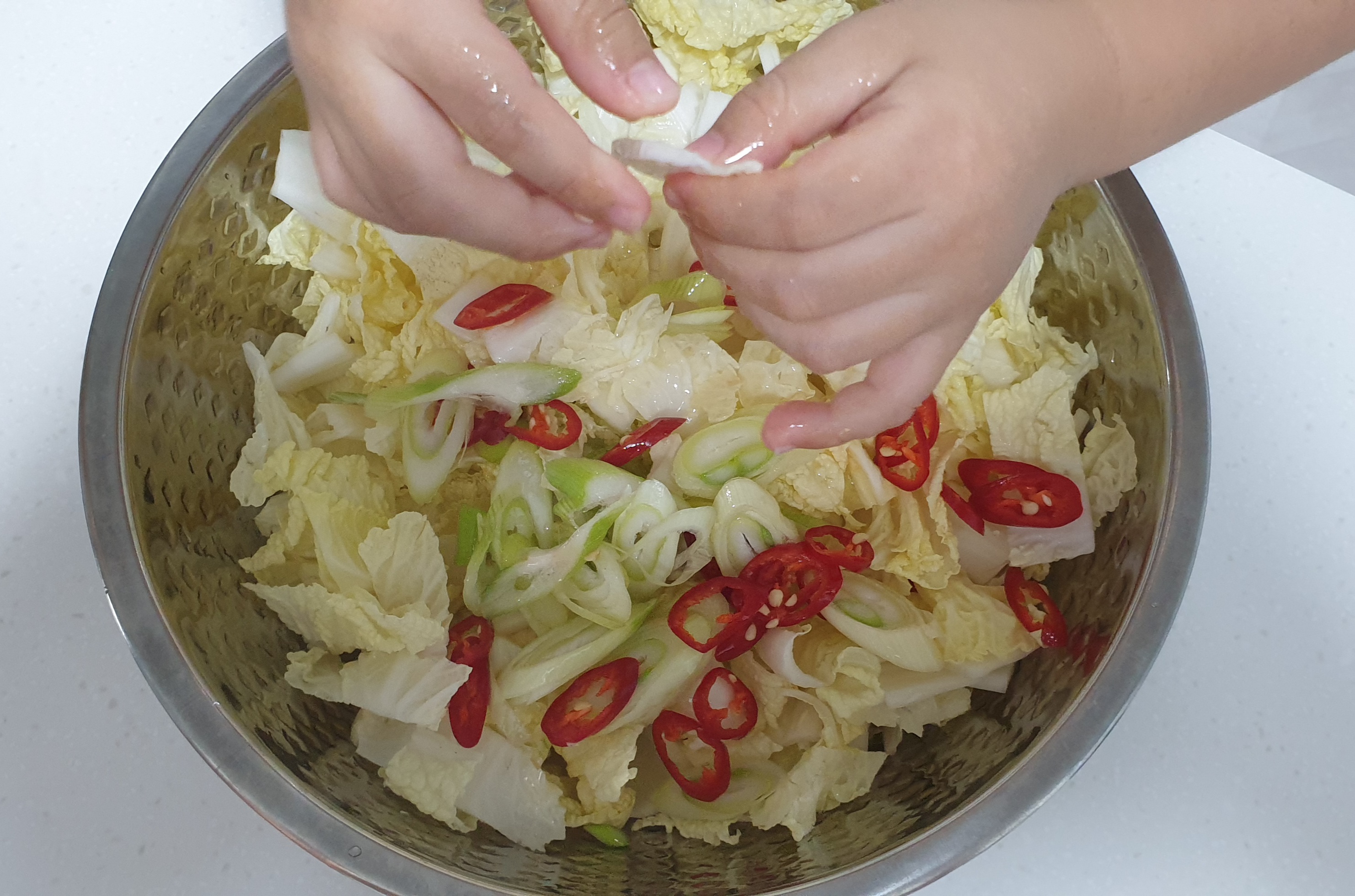 아들도 김치를 담갔다는 사실에 으쓱하고