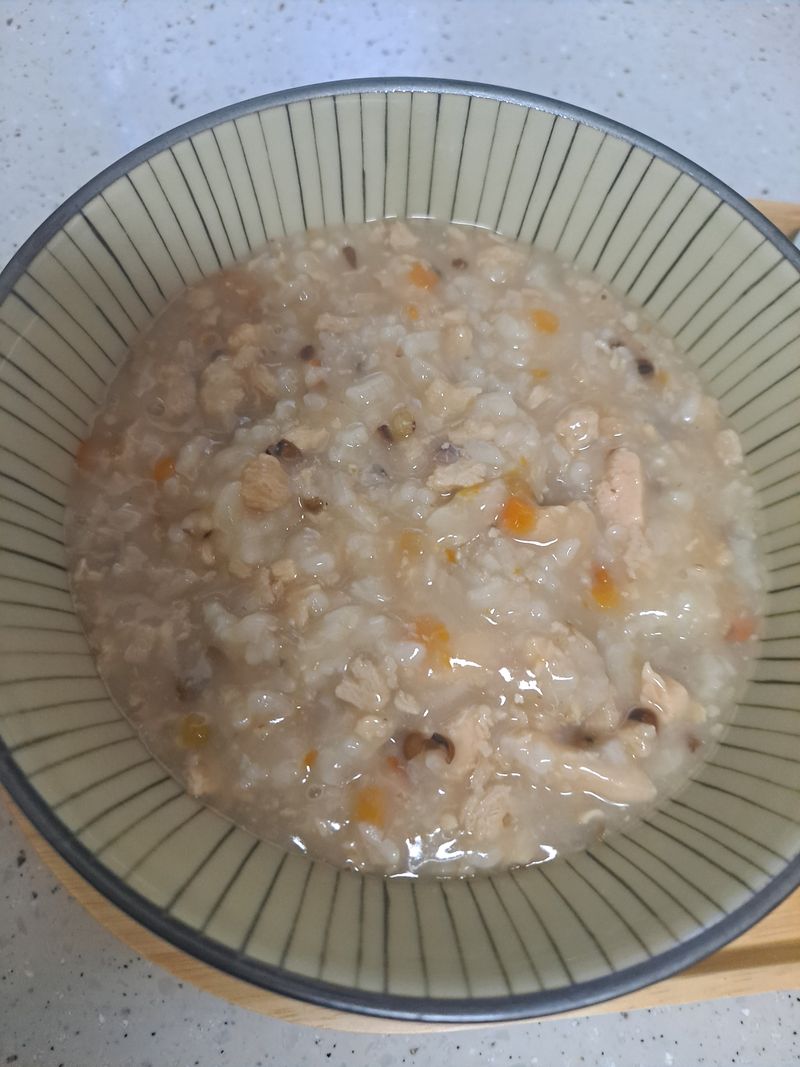 쫄깃한 전복, 부드러운 닭고기와 고소한 녹두가 씹히는 단백한 죽으로 든든한 아침식사 흥한 요리