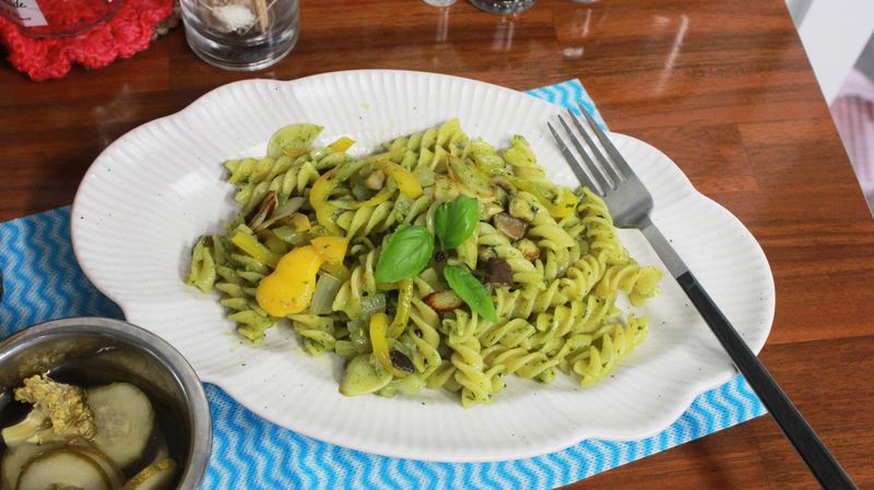 이렇게 만든 바질 페스토로 바질페스토 푸실리 파스타를 만들었는데 바질이 신선해서 맛이 너무 좋아요!