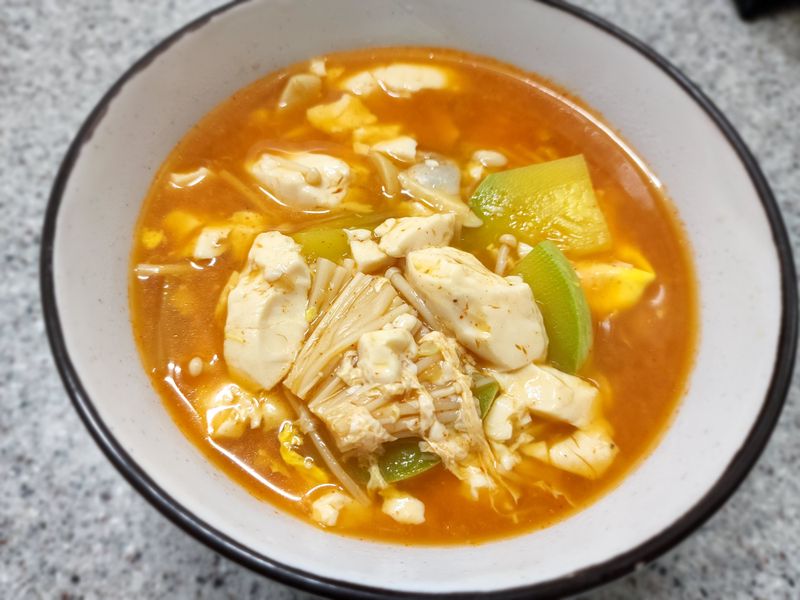 짬뽕탕에 순두부만 넣어 완성!