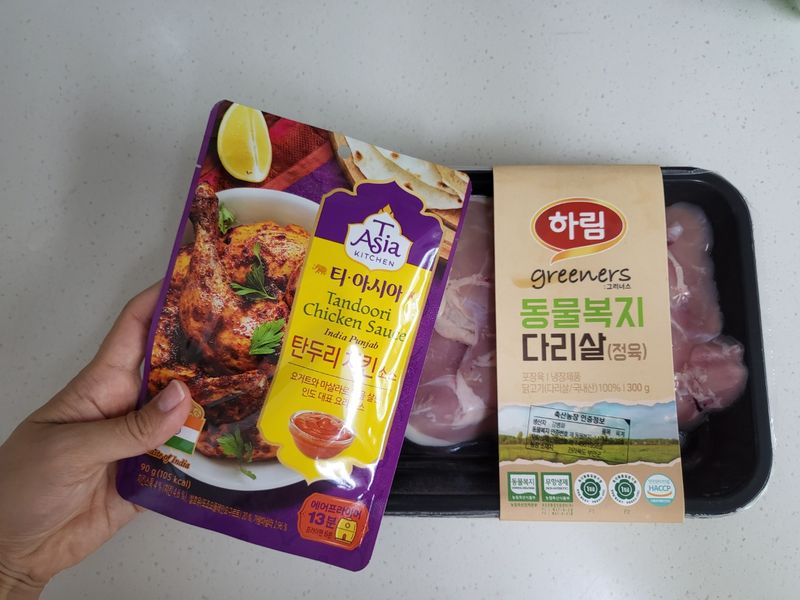 색다르게 먹을 수 있는 방법이 없을까 하다가 발견한 티아시아 탄두리치킨소스.