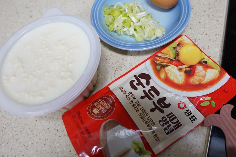 양념 , 순두부 , 파 , 계란 그리고 고추가루면 완성