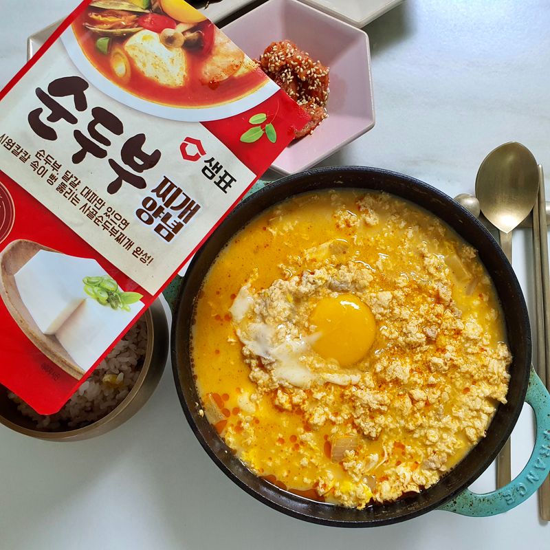샘표 순두부찌개 양념, 순두부 한봉지, 계란 한 알, 대파만 있으면 맛있는 순두부찌개 완성~!