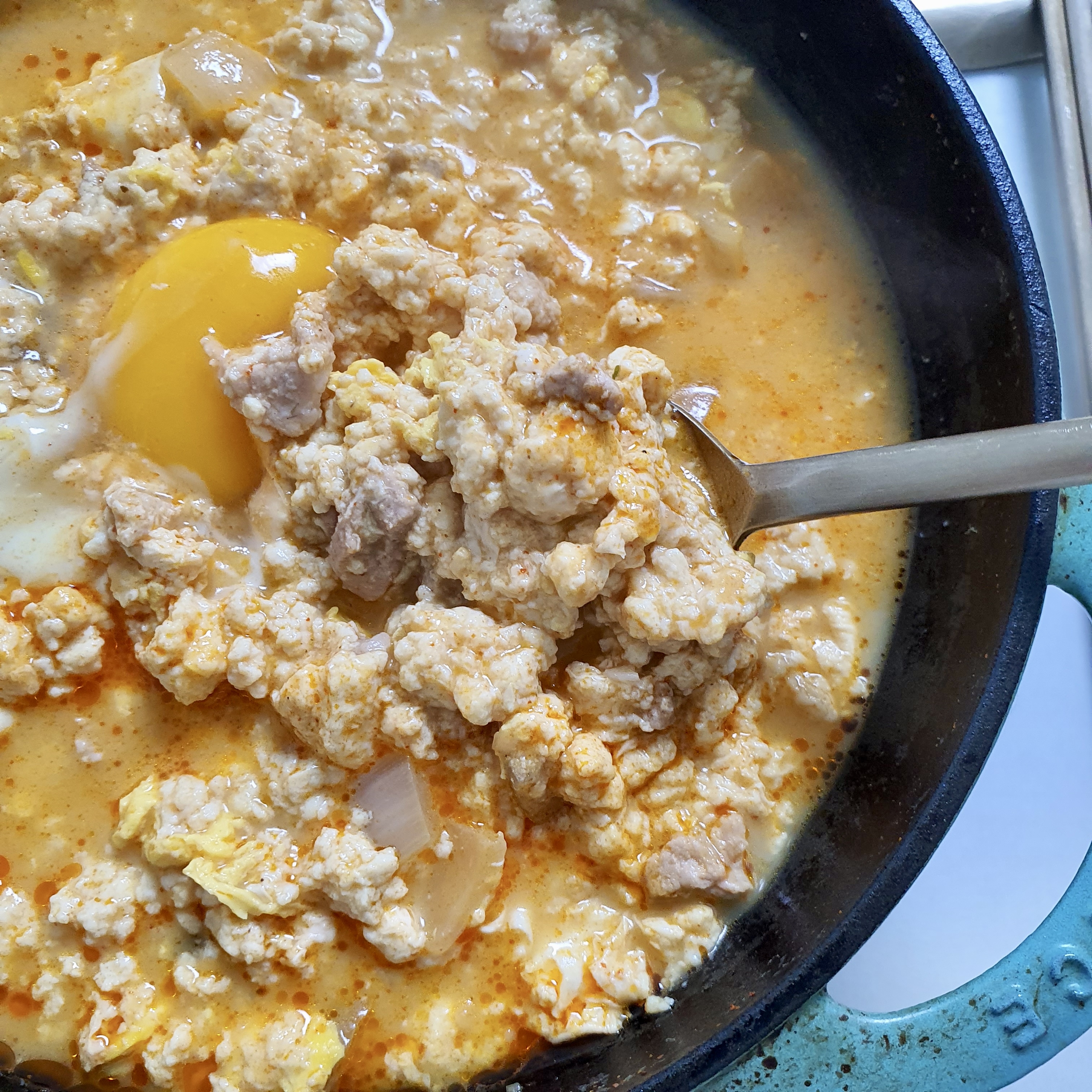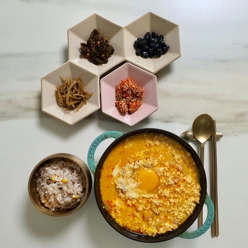 매콤고소한 순두부찌개면 밥 한그릇은 뚝딱이죠 ㅎㅎ 밥은 옥수수밥인가요?