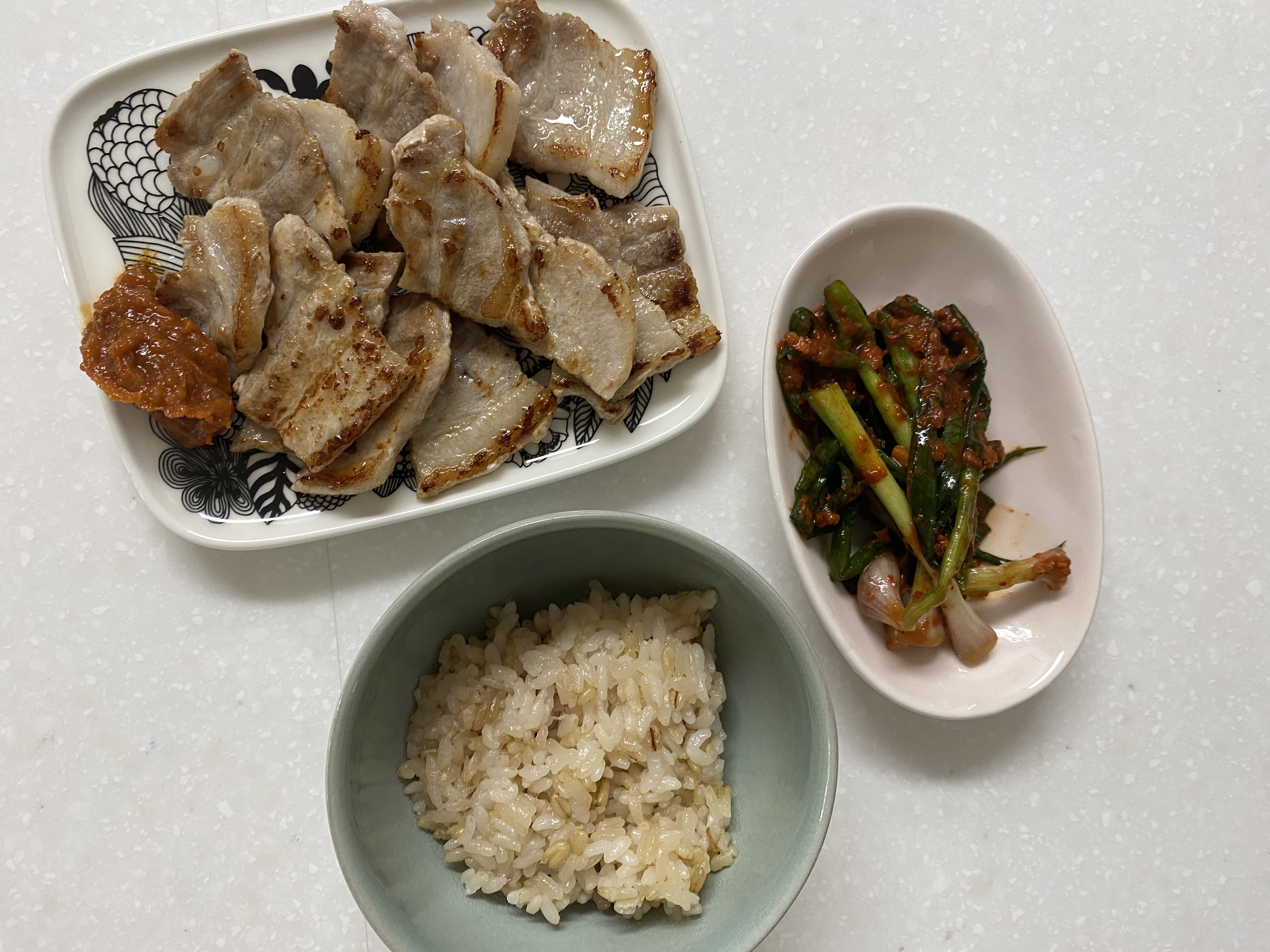 양갈비고수님이 요리해주신 양갈비입니다 올리브유 + 후추 + 월계수잎 등으로 시즈닝 후 미디엄레어로 구워낸 양갈비 증말증말 맛있습니다