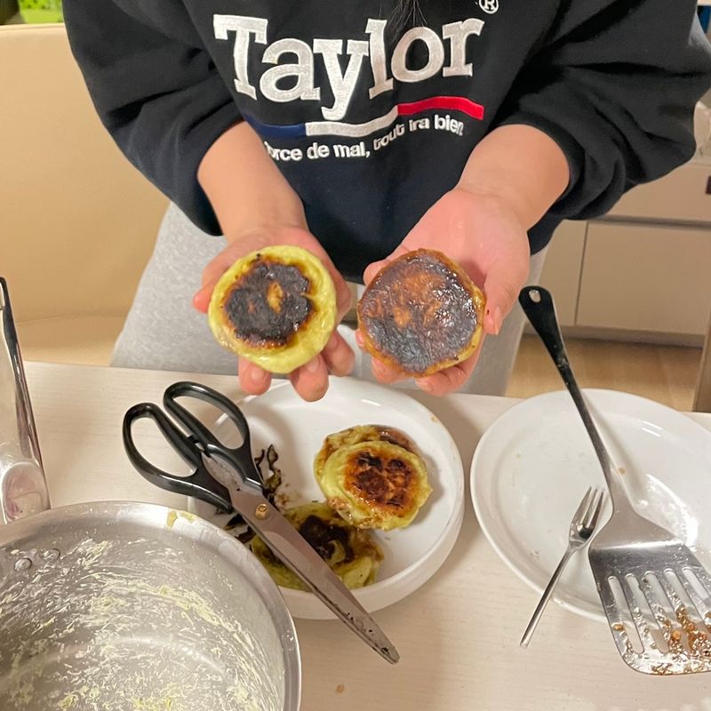 야심차게 호떡을 만들었어요 그런데.. 이게 호떡인지 석탄인지...... 탄부분 떼어내고 야무지게 먹었어요 ㅎㅎ
