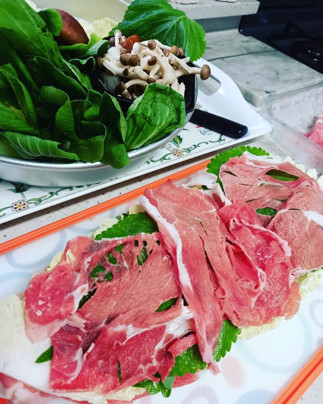 #밀페유나베 천개의잎사귀라는 프랑스어와 전골요리 뜻하는 일본어가 만나 만나 만들어진 요리 겹겹이 쌓은 요리는 야채와 샤브샤브용고기 듬뿍 넣은 깔끔한 국물요리 내가 좋아하는 요리 에어컨 켜두고 따뜻한 전골요리 먹으니 힐링시간 눈도 즐겁고 입도 즐거운 #밀페유나베 요리 연두로 국물맛내고 닭가슴살냉채소스로 찍먹하니 맛이 일품이다