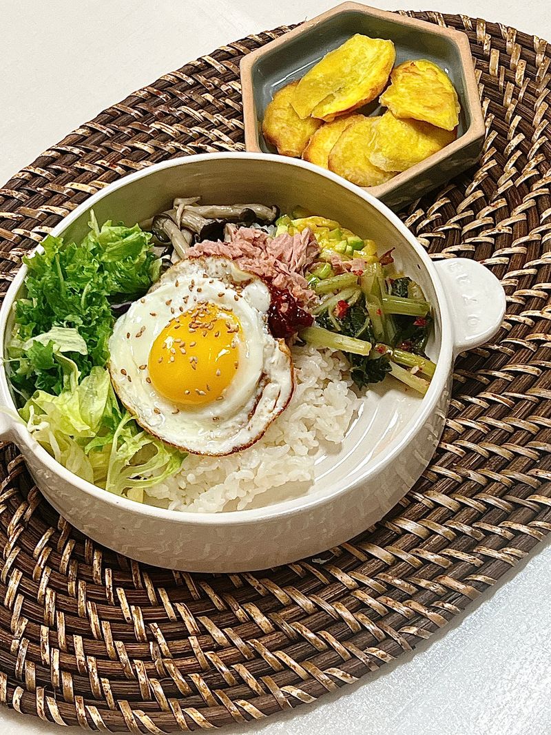 참치비빔밥을 해보았어요 ㅎㅎ 고구마 킬러인 저를위한 고구마전은 덤…🧡