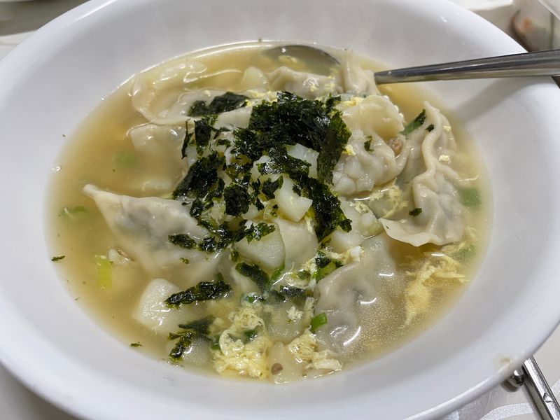 뜨끈한 국물과 함께 만두 동동 !
