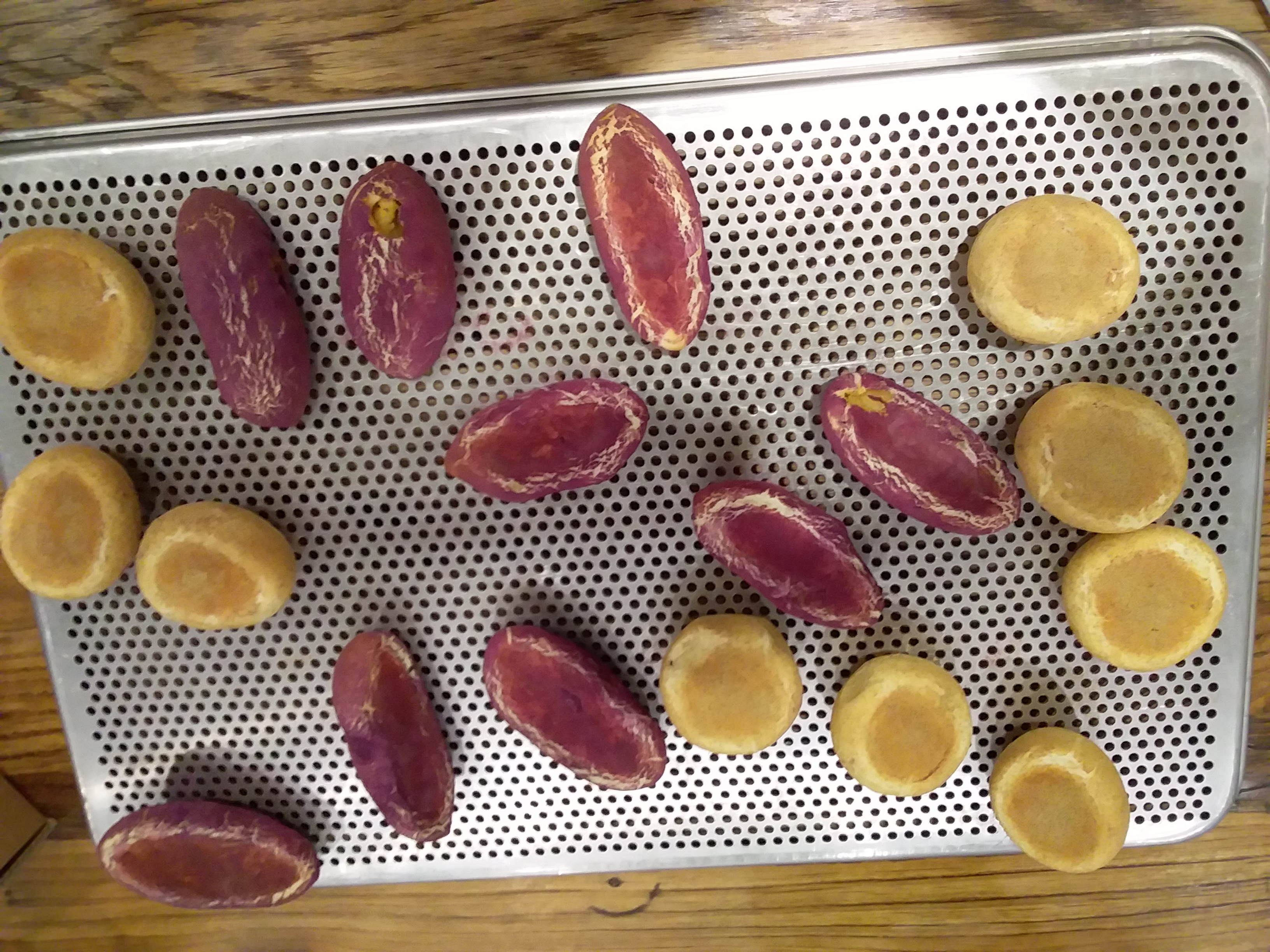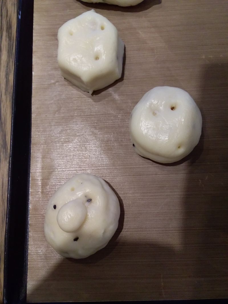 저는 감자가 좀 더 귀엽게 호빵맨으로 하나 만들고 반죽이 노랑노랑하니 벌집모양으로 육각형 하나 마지막은 리얼감자 고구마들은 홀쭉이 날씬이 통통이 리얼고구마로 만들었어요