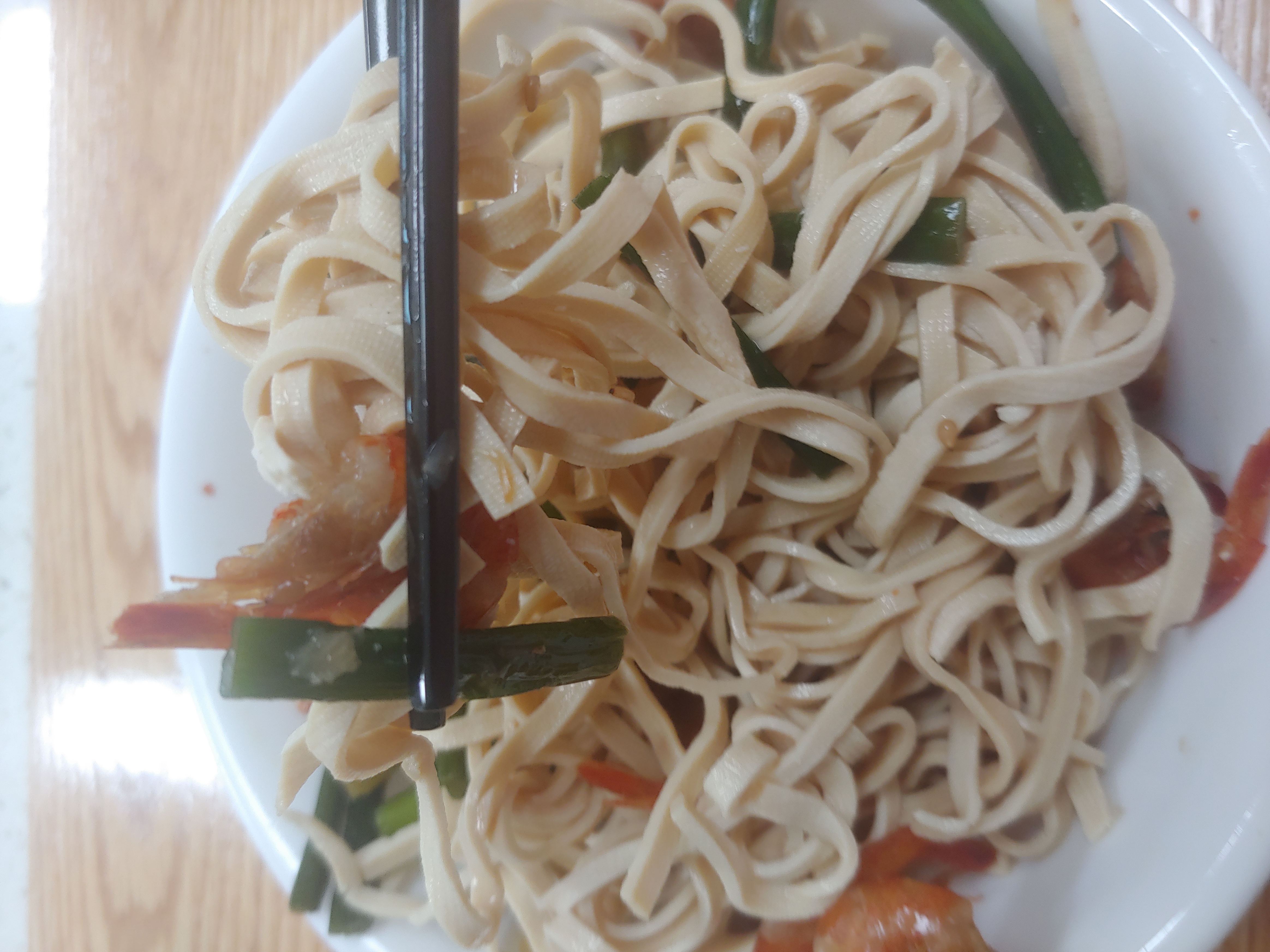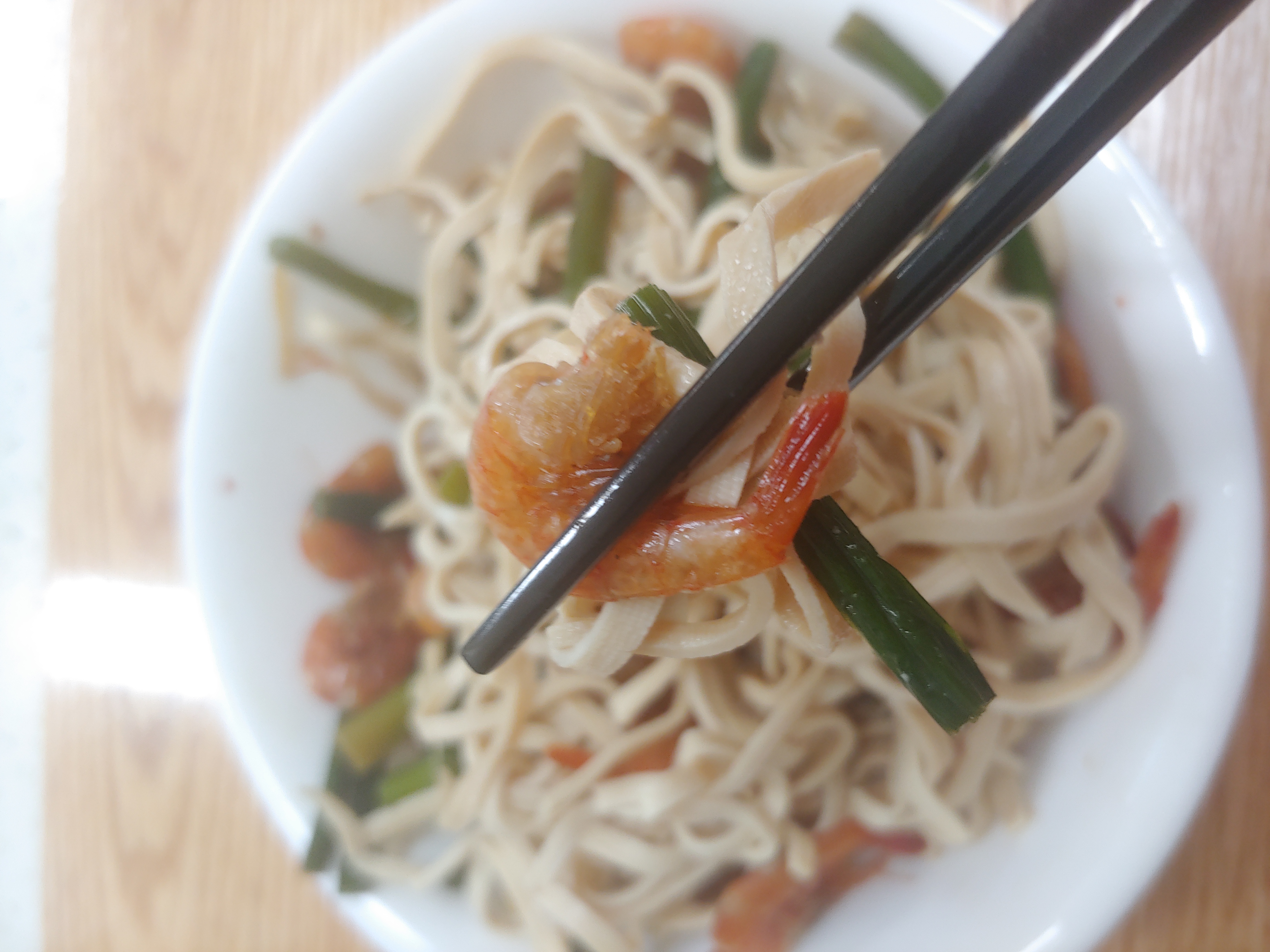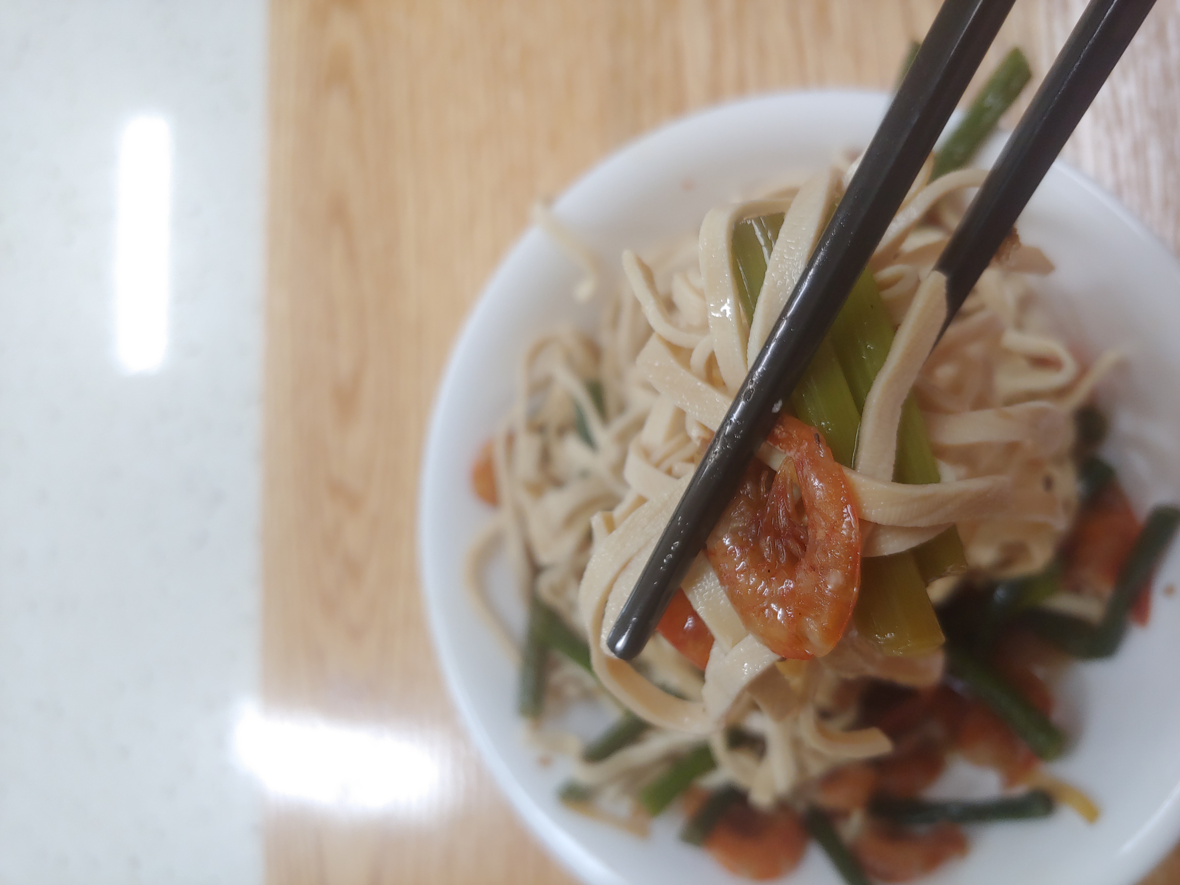 마늘쫑새우볶음은 여름입니다 물에 헹군 두부면을 넣어 휘적이면 어느새 완성된 마늘쫑새우볶음면 여름을 보내는 지금 너무 덥지도 춥지도 않은 오후의 시간에 딱 알맞게 먹었습니다