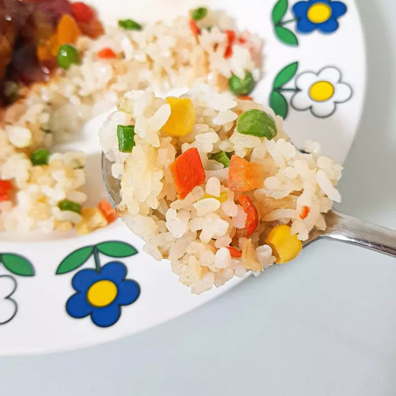 시판 닭가슴살 함박도시락인데요. 닭가슴살 함박 스테이크, 볶음밥, 채소로 구성되어있어요 ❤