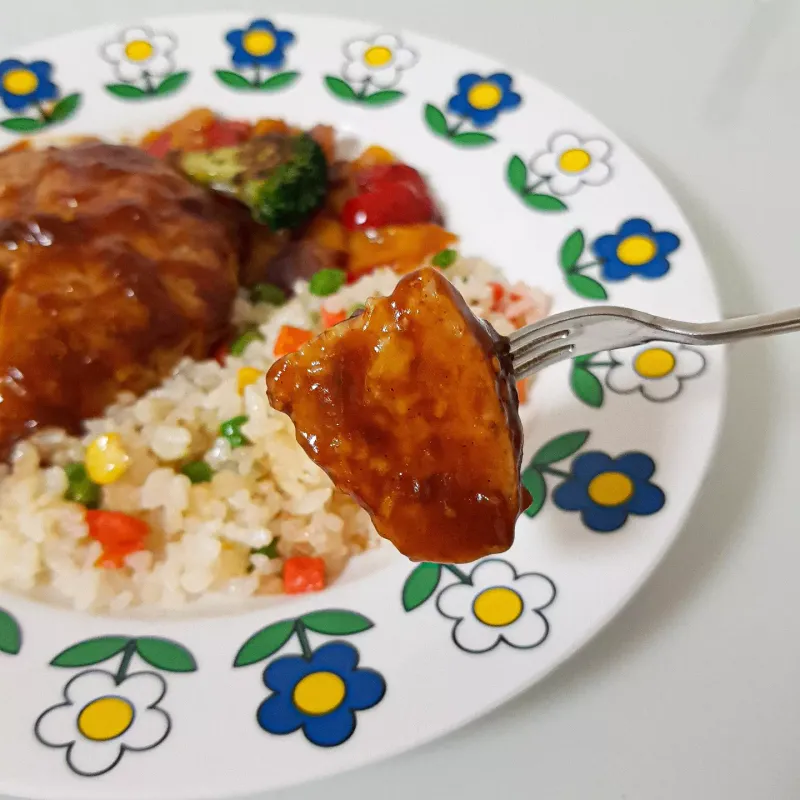 처음에는 양이 적은가 싶었는데, 닭가슴살 함박 스테이크가 은근 도톰하고 든든했어요 ❤ 국산 닭고기 100%인데도 정말 촉촉하고 부드러워서 일반 함박스테이크처럼 맛있었어요 ☺️