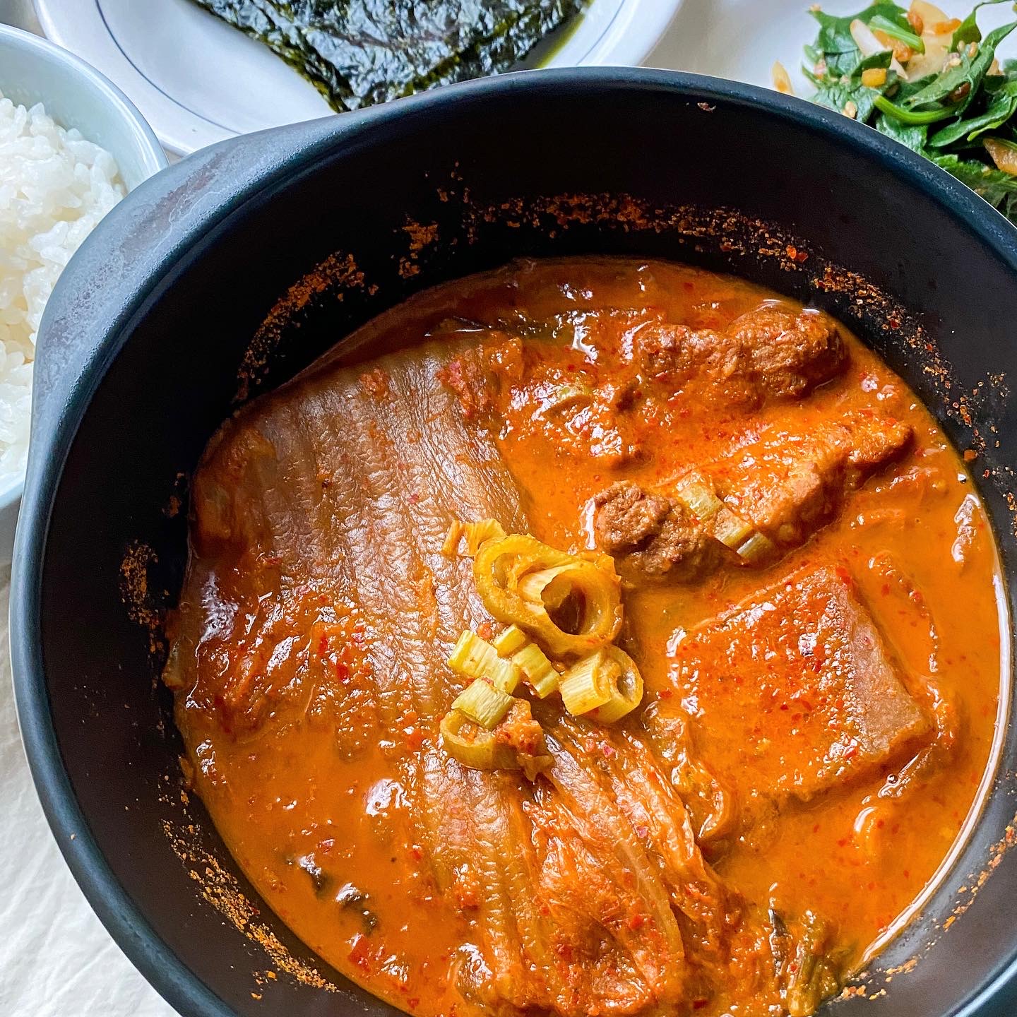 이 김치찜은 2017년도에 동생과 둘이서 만든 김치로 만든 김치찜이예요 엄마표 김치와는 묘하게 맛이 다르지만 생각보다 맛있게 만들어졌고 아껴뒀다가 마음이 힘들때면 꺼내먹고 있어요 오늘은 자박하게 푹 끓여서 부드러운 김치찜으로 한그릇하니 힘들었던 지난 날을 위로받는 느낌을 받았네요