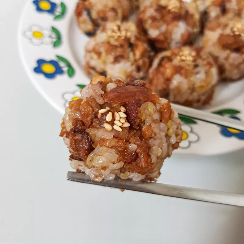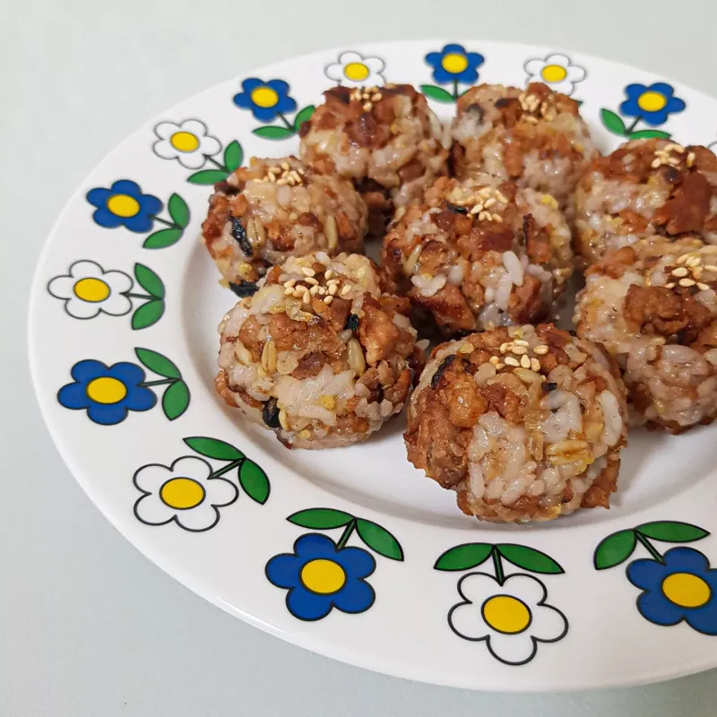 언양식 바싹불고기랑 다진 양파 잘 볶다가, 잡곡밥이랑 뭉치면 주먹밥 완성! 불고기 자체에 달짝 짭짤한 간이 있어서, 다른 소스는 안 썼어요 ❤