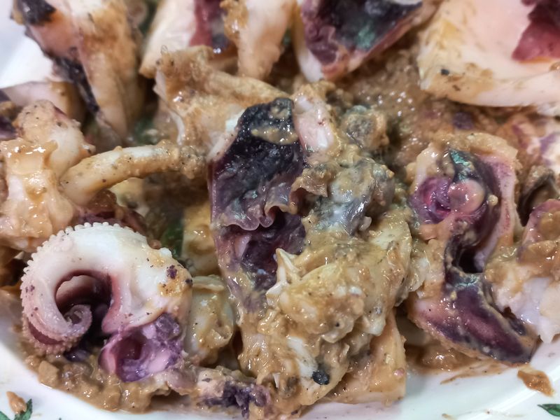 모래집(위장), 입, 눈....! 그리고 나머진 다~~~먹습니다♡ 내장이 젤 맛있어요ㅎㅎ 간도 안 해도 됩니다. 요거는 먹물이 중간에 터져버렸지만ㅠㅠ