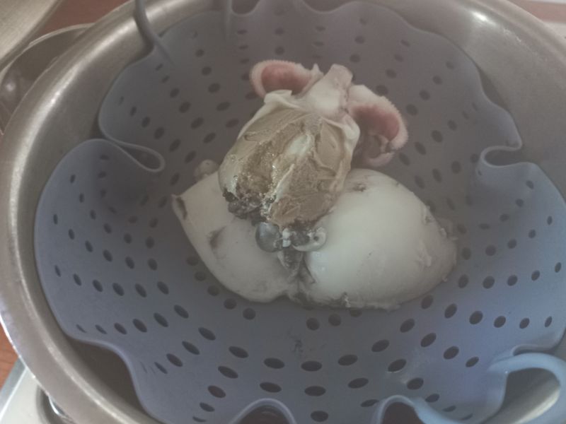 오징어 눈은 확 눈에 띄어서 그부분을 가위로 살짝 떼내면 되지만 저는 걍 먹어서 손질 안하고요~~ 입은 아래쪽에 큰 빨판을 쭈욱 꼬집으면서 눌러주면 알아서 나와요! 제일 귀찮은 게 갑이랑 모래집 제거인데 갑은 통찜하면 알아서 나오긴하지만 저는 미리 모래집을 제거하기 위해 가위로 갑있는쪽을 째서 빼내주고 몸통을 내장과 먹물을 안터트리도록 조심해서 쭈욱 떼내고 머리 제일 위쪽에 있는 모래집(위장)을 제거합니다! 통찜한뒤에 모래집 제거는 힘들더라구요~~