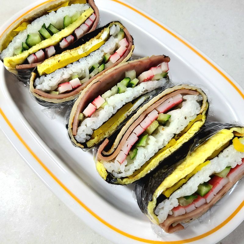 김이 겹치고 겹치다보니 김이 좀 질긴 맛이 있긴하지만 또 재미로 한 끼 먹어보아요♡