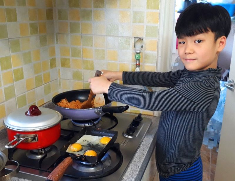 피곤한 엄마를 위해 큰아들이 요리를 했어요!