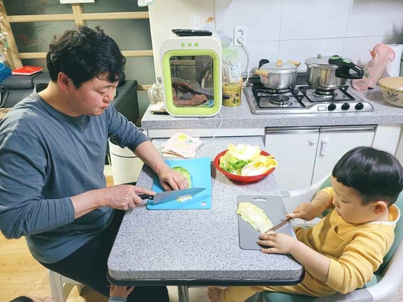 아들이 엄마 김치 만들어야해요~라고 해서 바로 아빠소환^^ 했죠