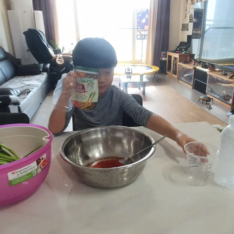 아들과 함께 내가 깍뚜기를 담궜어요~~~ 언제나 친정엄마가 주신 김치만 먹다가 직접 아들과 요리하니 행복합니다~