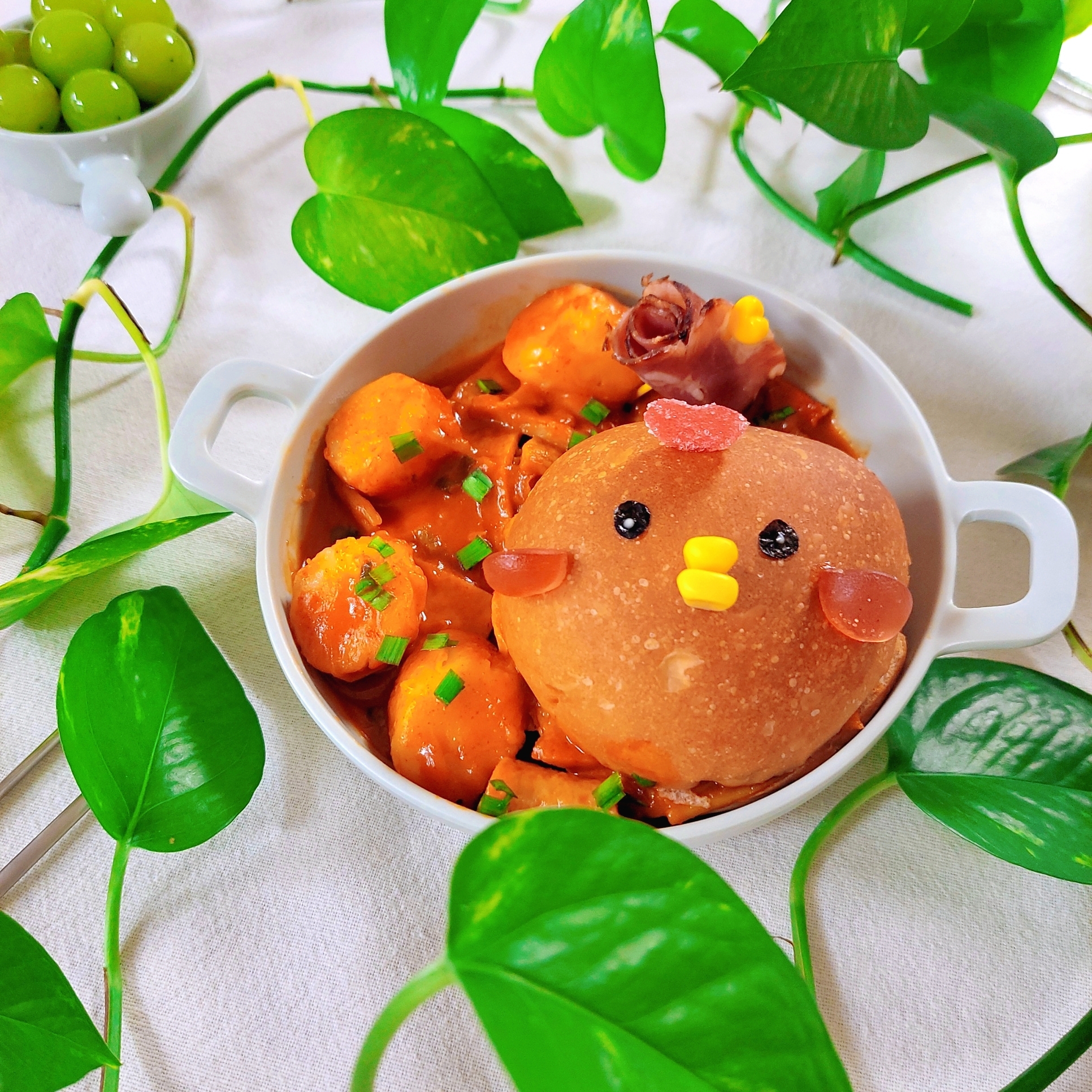 미션4. 놀이공윈보다 더 재미있다고? 아이들이 좋아하지 않는 양파.ㅈ파프리카,양송이버섯등 야채를 넣고 로제떡볶이 만들어서 조금시나마 야채와 친해지는 시간을 가졌어요 😃 모닝빵으로 빠네처럼 로제떡볶이 담아 소프트한 빵의 식감과 로제소스의 조합이 아의들의 입맛을 사로잡을거에요 :) 거기에 모닝빵으로 귀여운 꼬꼬닭 꾸며서 캐릭터밥상 차렸어요 🐔