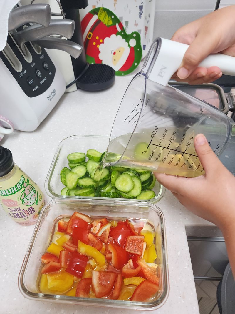 뚝딱 뚝딱 야채를 썰어 새미네소스만 부으면 끝