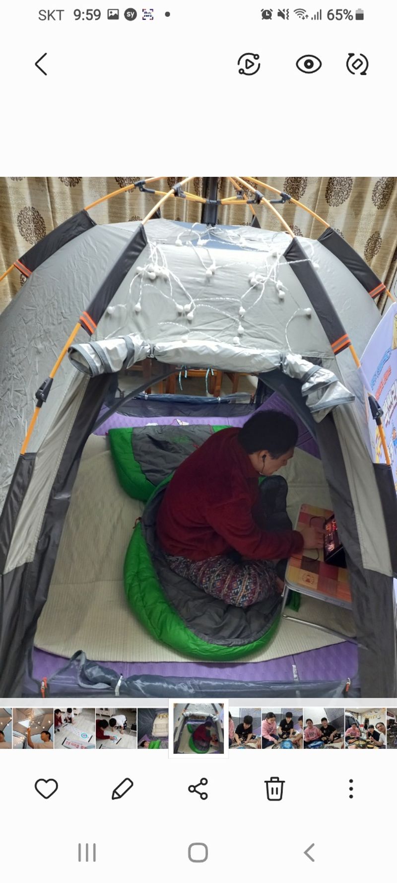 코로나가 길어지고 회사를 관두고 이직준비하는 2년 너무 혹독한 집콕생활에 힘든시기 1주일 집콕캠핑을 했다 텐트를 펼쳐 텐트안에서 자고 영화도 보고 휴대폰도하고 음악도 들으며 라면,비빔밥.볶음밥.부대찌개, 김치찌개, 커피마시기 그리고 제일 추억에 남는 깜바스요리에 인삼주를 개봉했다