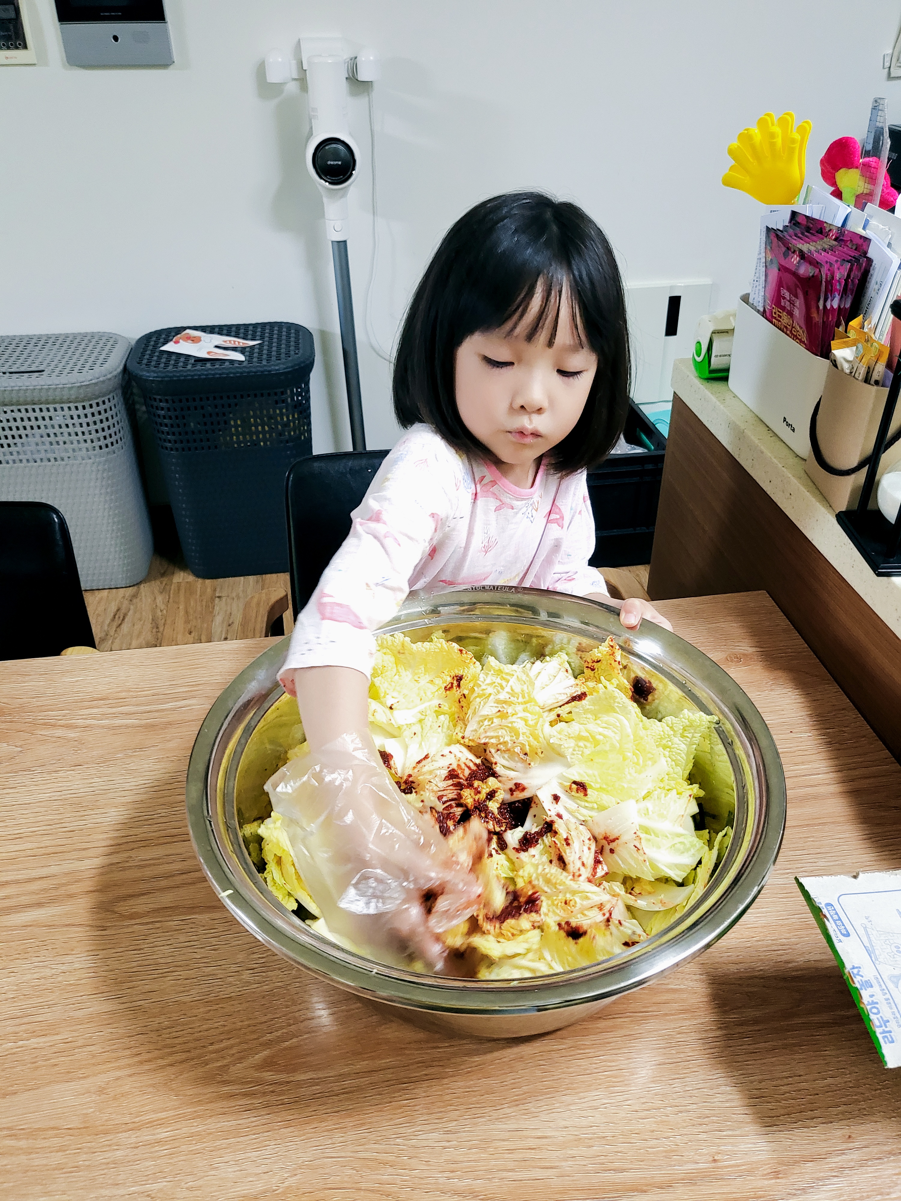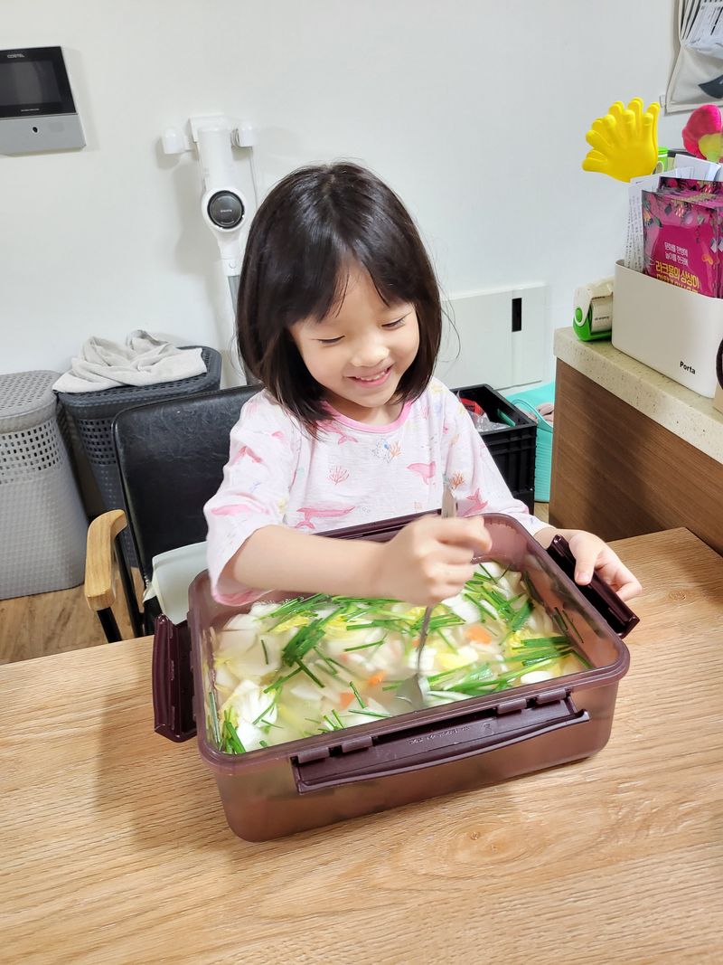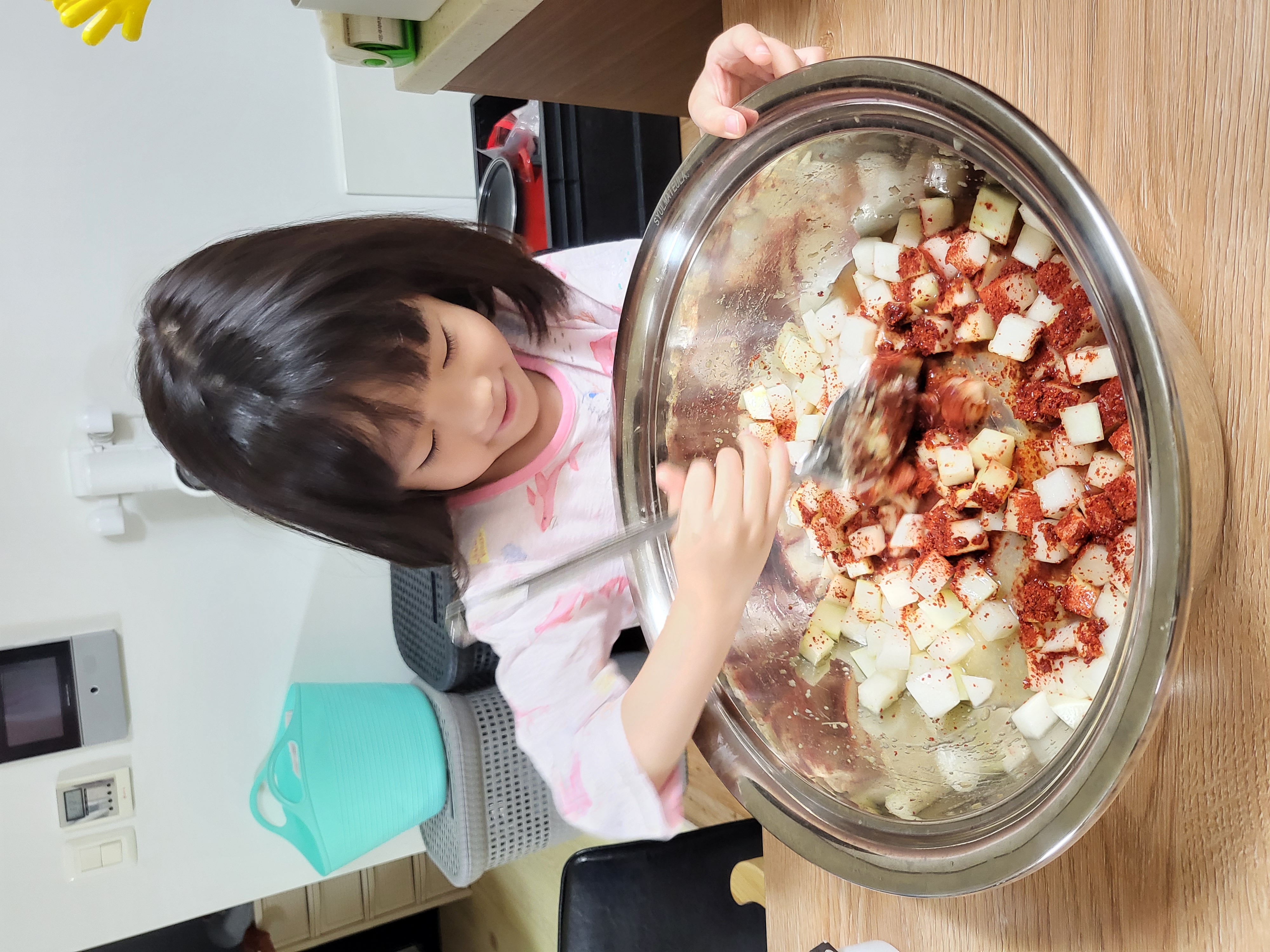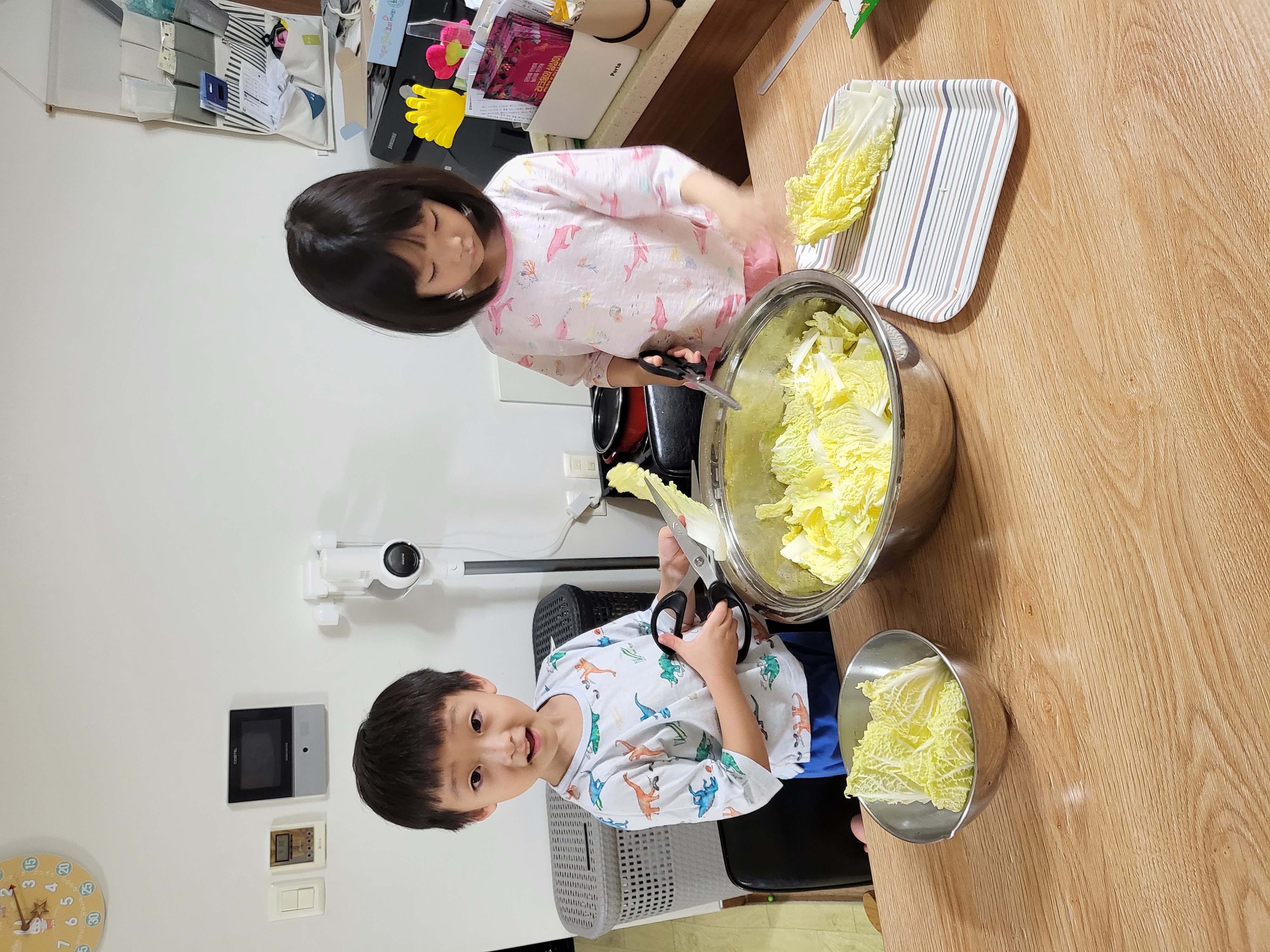 맛있는 추억을 그리다에서 새미상을 수상하여 받은 선물꾸러미로 김치3종세트를 만들며 알찬 주말을 보내는 아이들이에요~^^