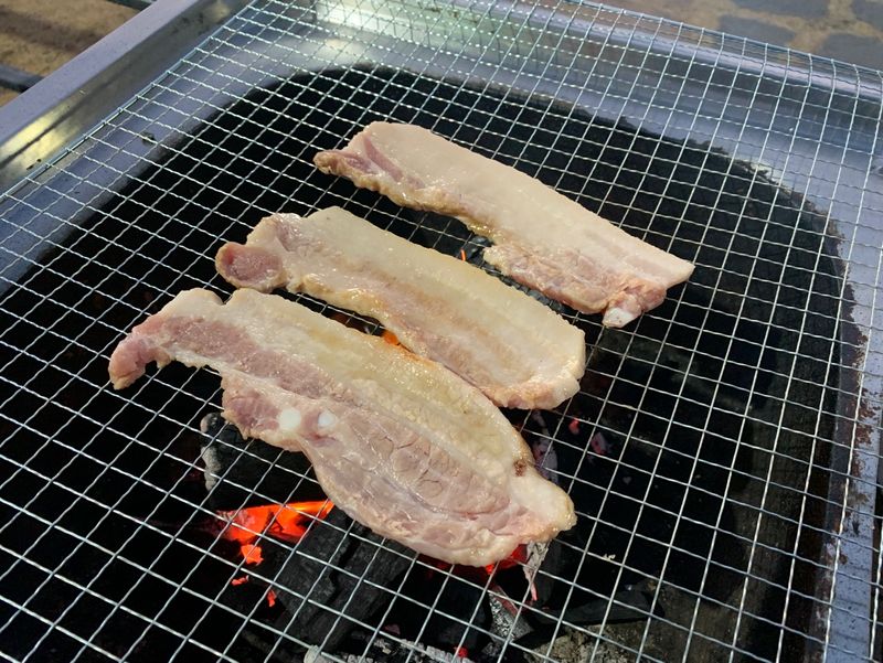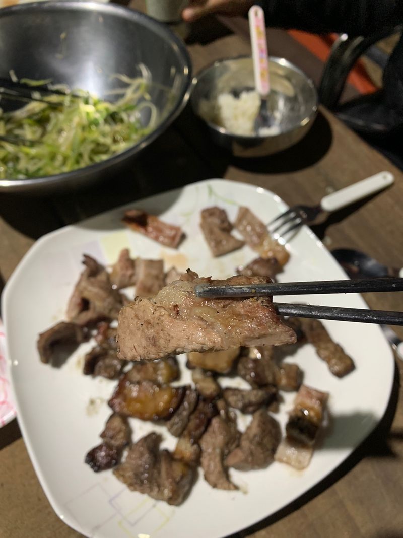 바베큐할때 목살은 기름기 쫙 빠지고 고소하고 너무 맛있어요 캠핑은 언제나 먹는 즐거움이 정말 크죠 ㅎㅎㅎㅎ 밖에서 불피우며 고기구우며 먹으니 너무 맛있더라구요