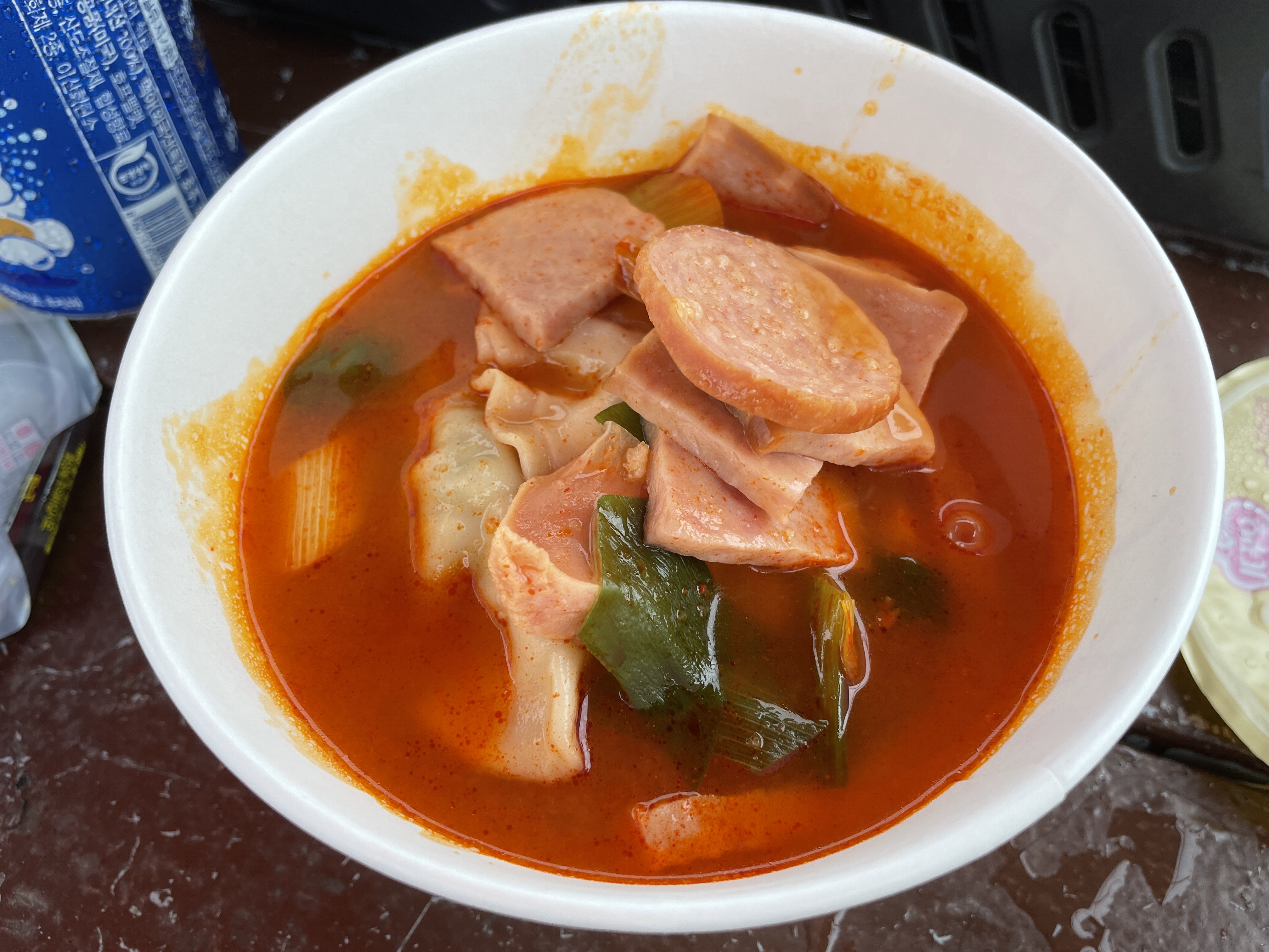 햄 소세지 만두 라면사리까지 듬뿍 넣고 보글보글 끓이면