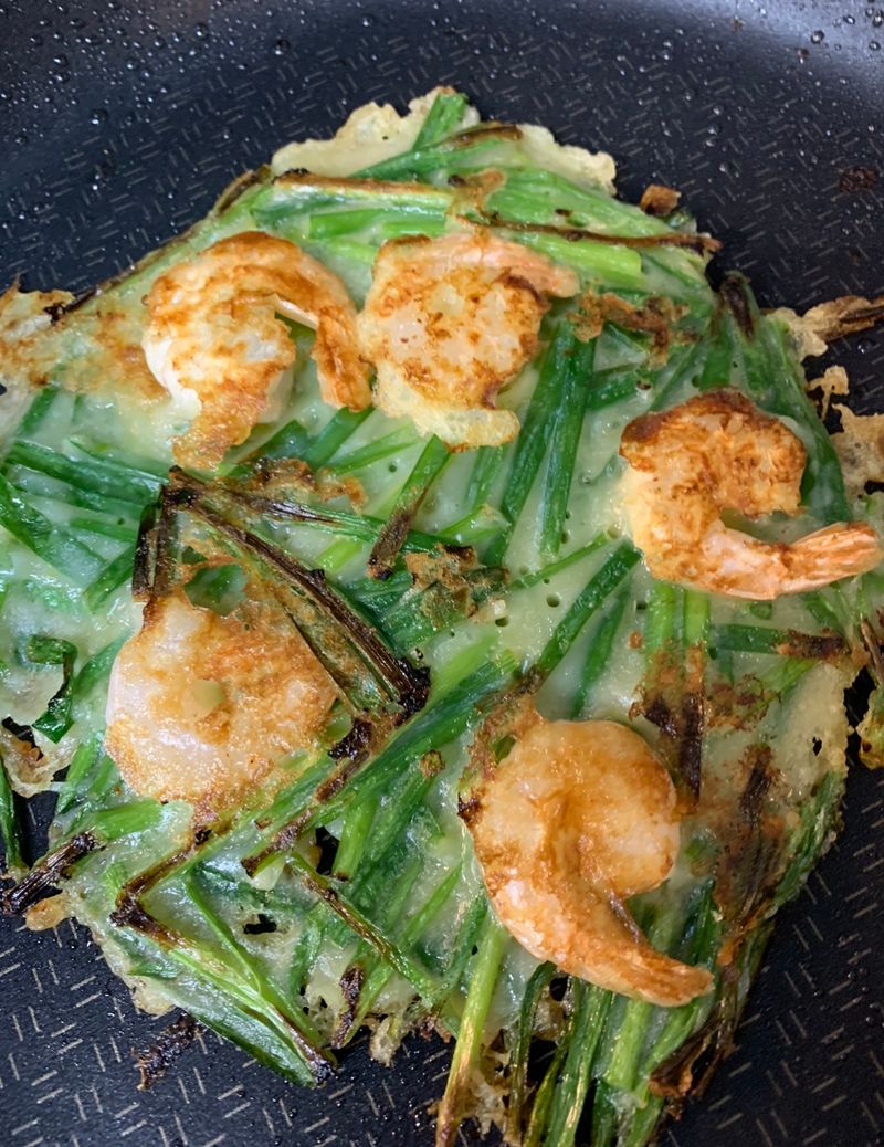 그런데 부추도 필요하다고 바닥에 깔고 과자처럼