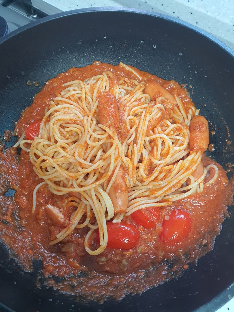 소시지와 스파게티로 재미있는 요리 완성
