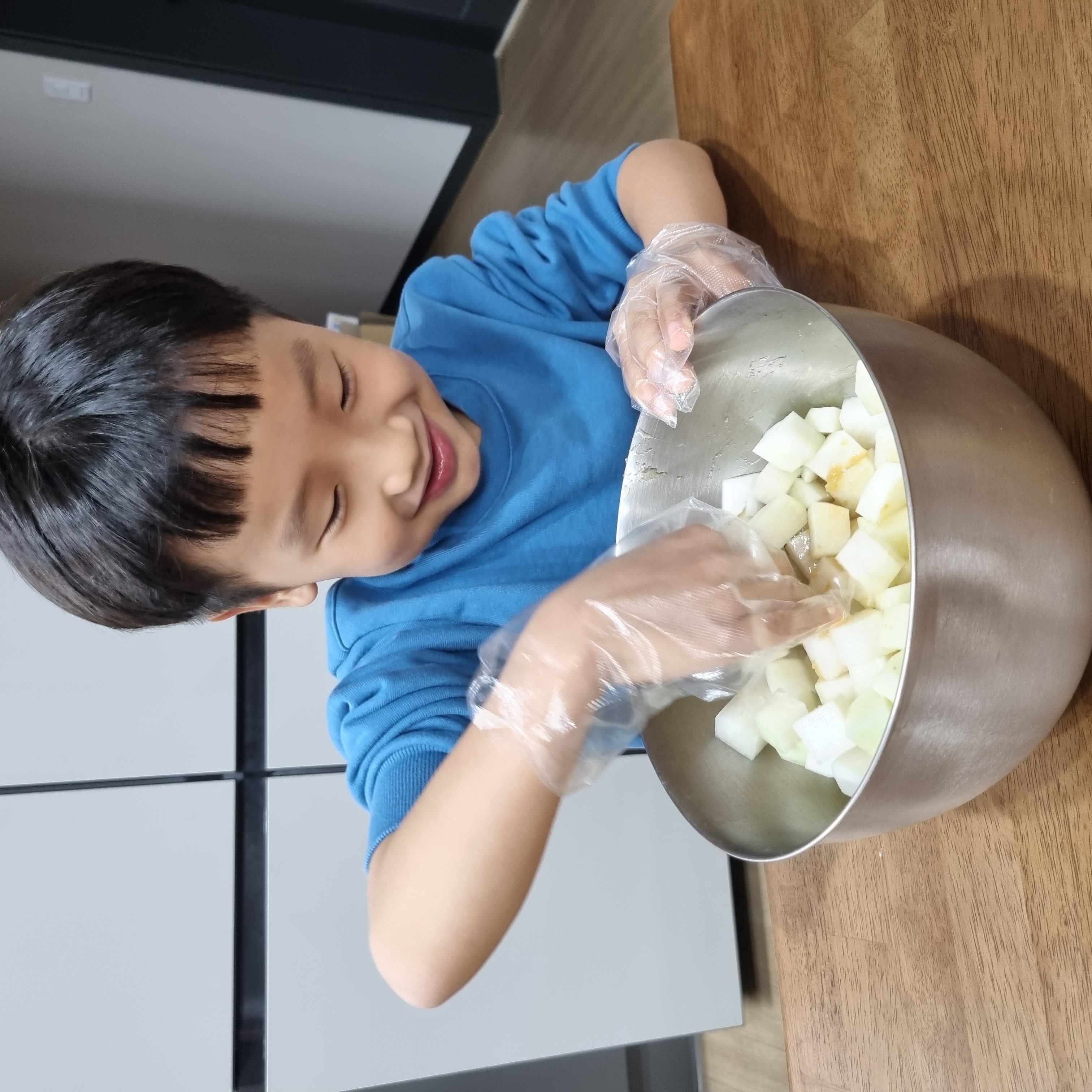 무도 직접 고르고 닦아서 네모네모 썰어서