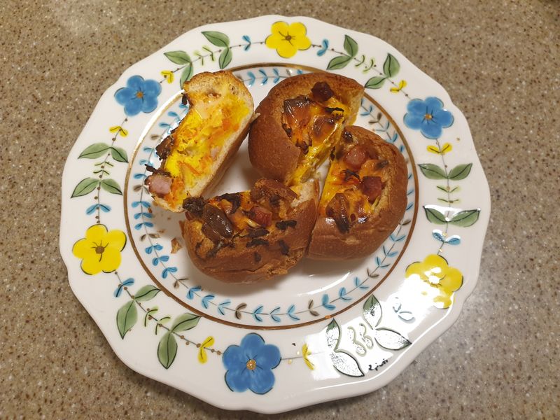딸아이와 모닝빵으로 맛있는 계란 야채빵을 완성했어요~ 모닝빵 속을 잘~ 파서! 평소에 잘 먹지 않는 당근, 치즈, 야채 빵속에 숨기고ㅎ 달걀노른자 쏙~ 연두와 올리브를 쉐킷쉐킷 위에 뿌려주니 풍미가득 계란빵 완성♡ 즐거운 요리 시간이었어요~! 편식해결♡