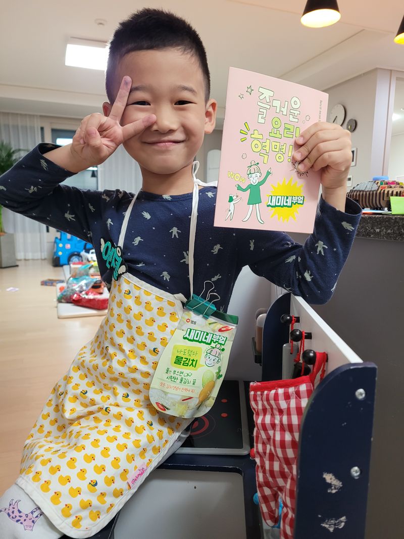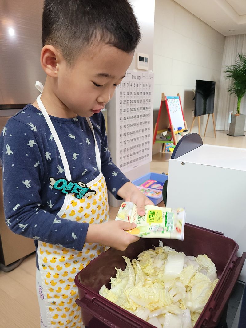 물김치 익으면 배추와 무 먹어보기로 약속한 꼬맹이~~